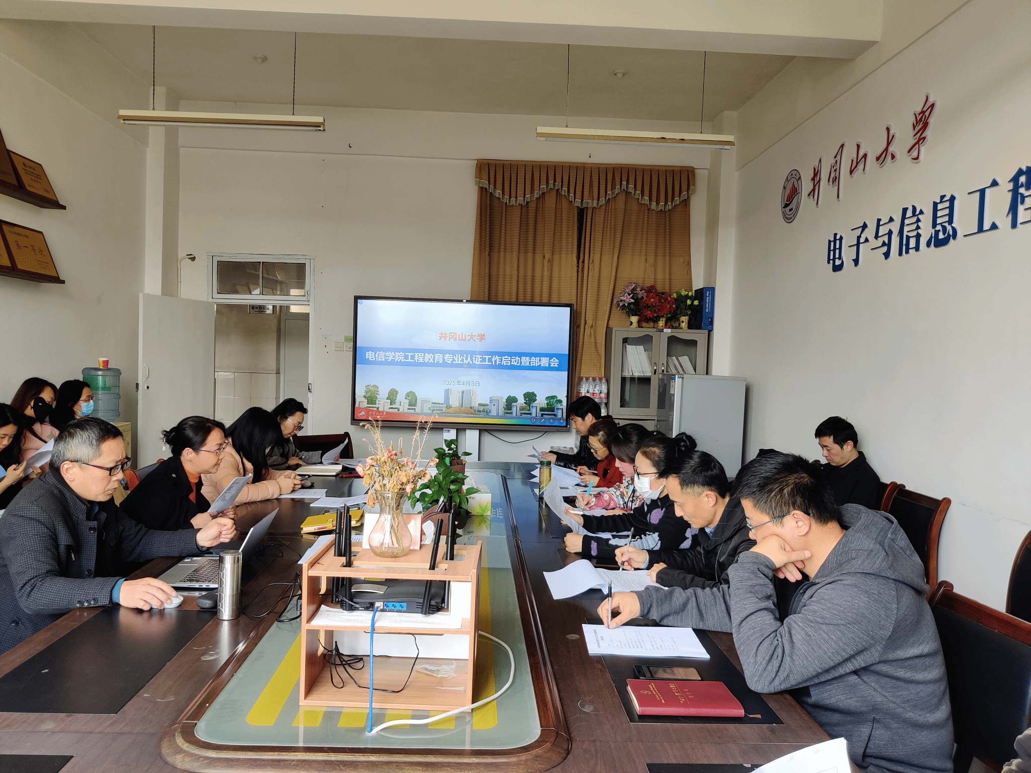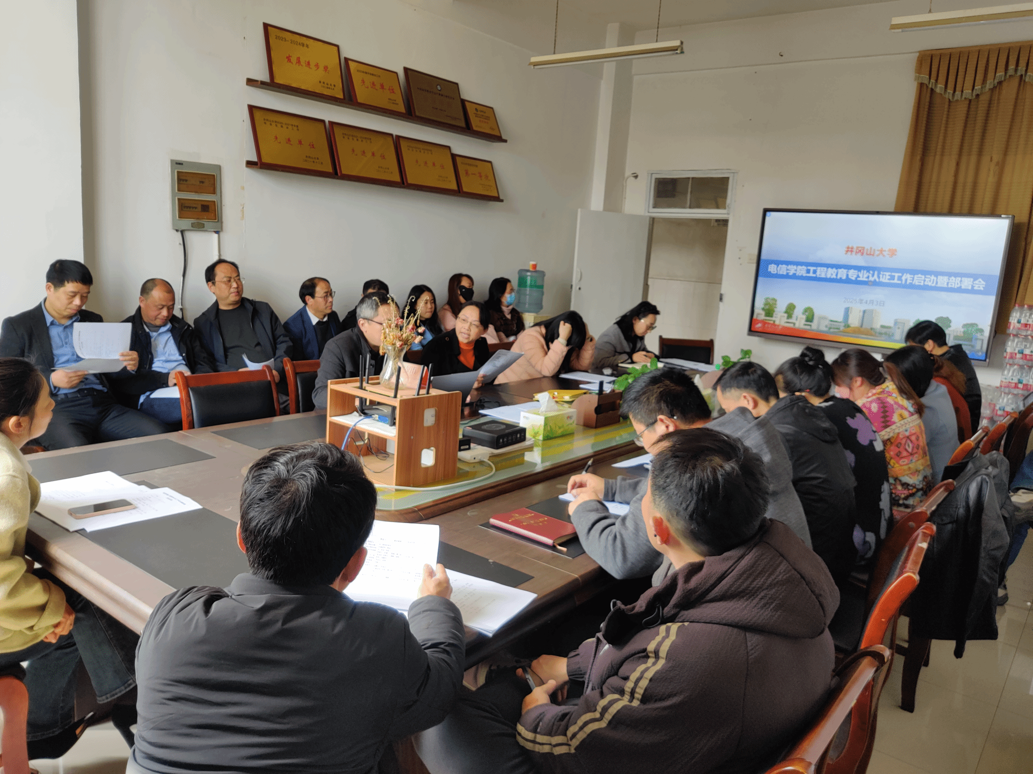为进一步提升专业建设水平,推进工程教育专业认证工作,4月3日,电信学院召开工程教育专业认证工作启动部署会。学院领导班子成员、各科室负责人、计算机系系主任、专业骨干教师和计算机教研室全体教师参加了此次会议,会议由学院党委书记黄郁南主持。