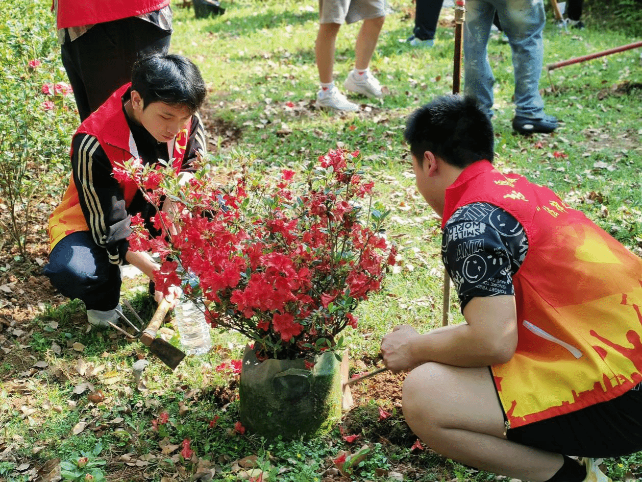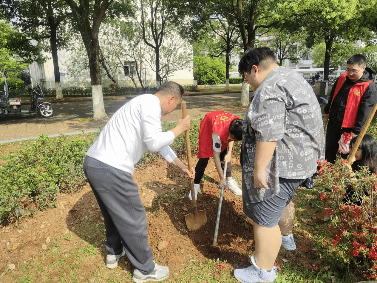 活动中,师生们热情高涨,纷纷手持铁锹、锄头,挖坑挖土、摆正树苗、培土浇水,干劲十足,不亦乐乎。种植现场,没有喧嚣的口号,只有铁锹与泥土的对话、汗水与青苗的相映。一番辛勤劳动后,映山红幼苗就被精心栽种于花园中,在春日暖阳中昂然挺立。亲手种下映山红,寓意着为申博目标埋下希望的“种子”,每一株幼苗的成长,都需经历破土而出的艰辛,正如学科建设需要全院上下凝心聚力、迎难而上。