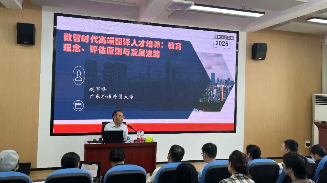 赵军峰教授围绕“数智时代的翻译人才培养:办学理念、评估原则和发展进路”等方面,从数智时代翻译行业发展趋势着手,深入浅出地绕翻译专业教育改革的方向与途径。与会师生纷纷表示:赵老师的讲座“既是一场学术盛宴,更是一次思想启迪”,为学院破解翻译人才培养瓶颈、优化学科发展路径提供了全新视角。讲座提出的“语言基石”与“学术顶石”双轨并进理念,为外语专业特别是翻译方向学生明确了成才方向。