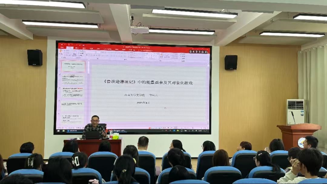 活动中,三位专家教授分别围绕各自研究的方向展开学术讲座。李应志教授以“《鲁滨逊漂流记》中的能量盈余及其对象化游戏”为题,立足独到的理论视角,重新解码这部世界文学经典中蕴含的现代性密码,用生动的案例向到场聆听的外院师生展示文学阐释的魅力。讲座既有理论深度又充满现实关照,反映了经典与现实的思维碰撞,将全体听众不断引向高水平的文学阐释视野,令人深感意犹未尽。