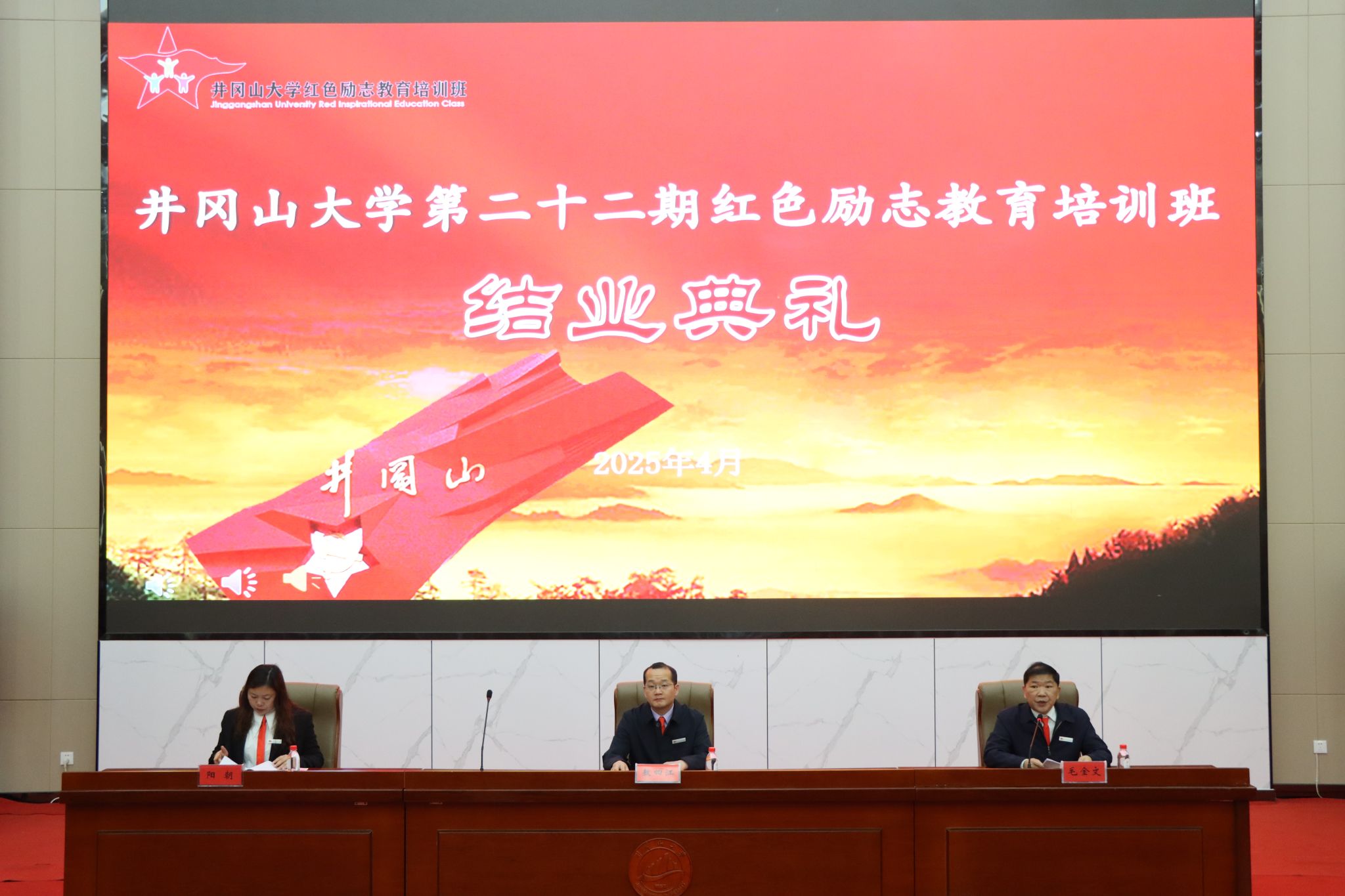 2025年4月26日上午,学校召开井冈山大学红色励志教育培训班(第二十二期)结业典礼,校党委常委、副校长敖四江出席典礼并讲话,学生工作部(处)相关负责人、第二十二期红色励志班班主任、辅导员、辅导员助理以及全体学员参加本次结业典礼。