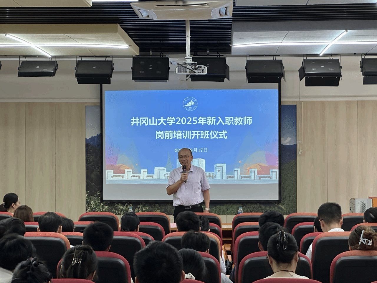 为提升我校新入职教师的思想政治素质、师德修养和教育教学能力,帮助新入职教师坚定职业理想,树立正确的教育理念,养成良好的职业道德,掌握基本的教学理论与方法,顺利渡过职业适应期,尽快胜任教育教学工作,9月17日上午,学校举行了2025年新入职教师岗前培训开班仪式。校党委常委、副校长黄族豪出席并讲话,教师教学发展中心相关负责人及参加今年岗前培训的新入职教师共计60余人参加了开班仪式。
