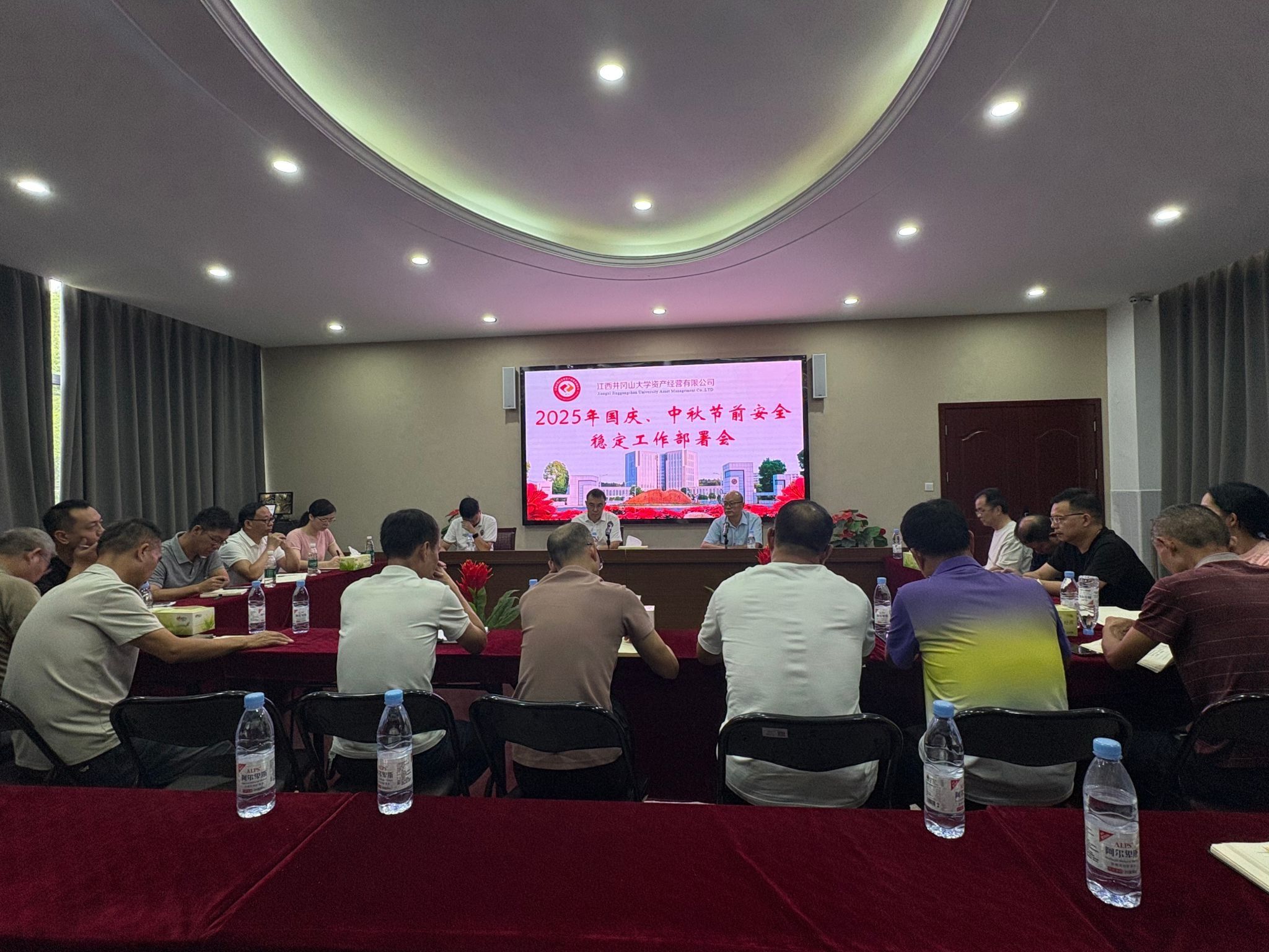 9月29日,公司召开国庆、中秋节前安全稳定工作部署会。校党委常委、副校长、公司党委书记(兼)段学民在会上传达学校纪委《关于国庆、中秋假期廉洁过节的提醒》,并提出具体要求:节前需开展安全大排查,做到责任落实、排查到位、整改闭环;全体人员要提高安全防范意识,严格执行值班制度;食堂需在假期做好保供,提升菜品质量与丰富度;同时守好意识形态阵地,严把宣传关口,严禁节假日期间酒驾、醉驾、赌博等行为,合理安排本职工作。