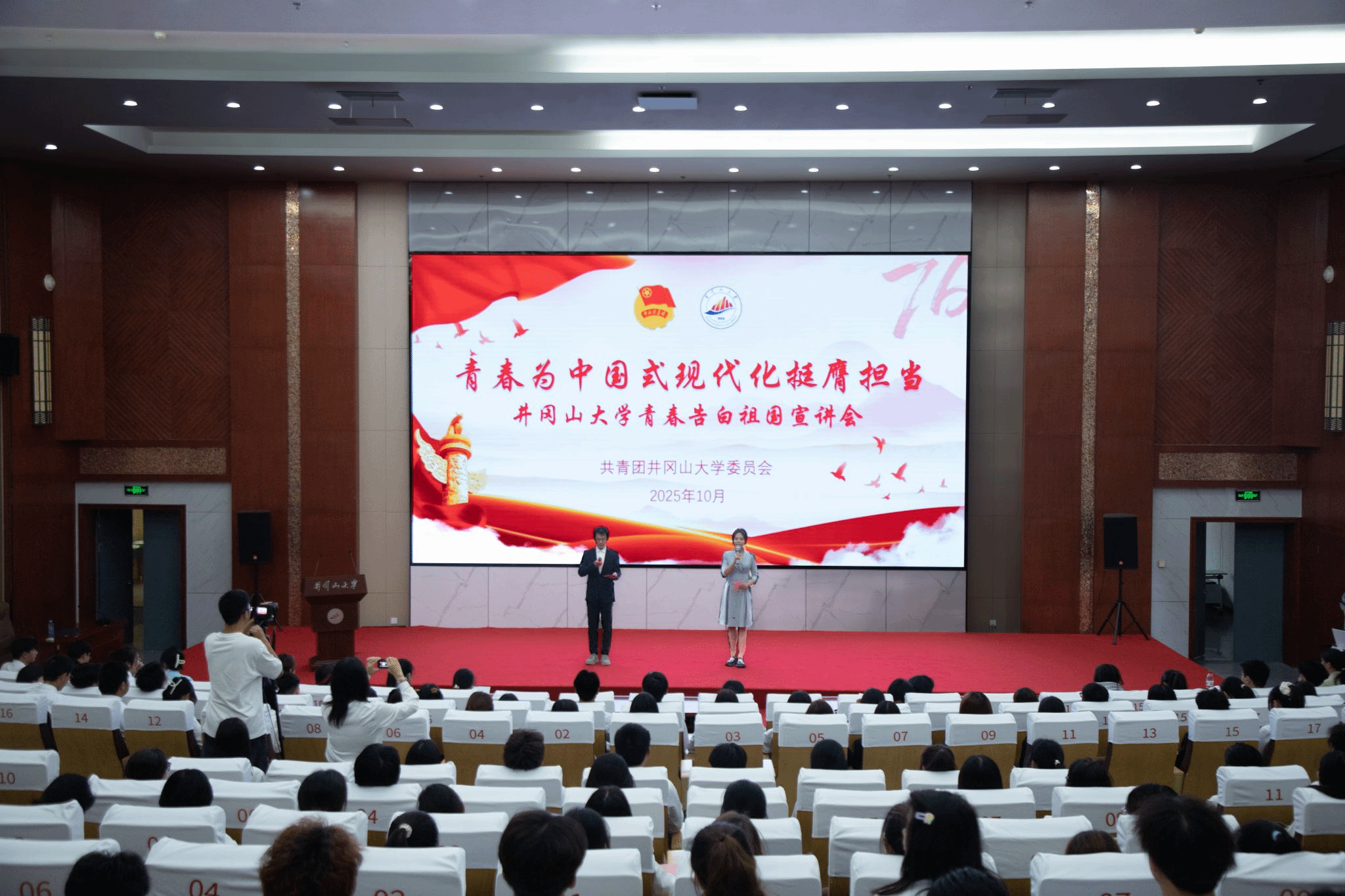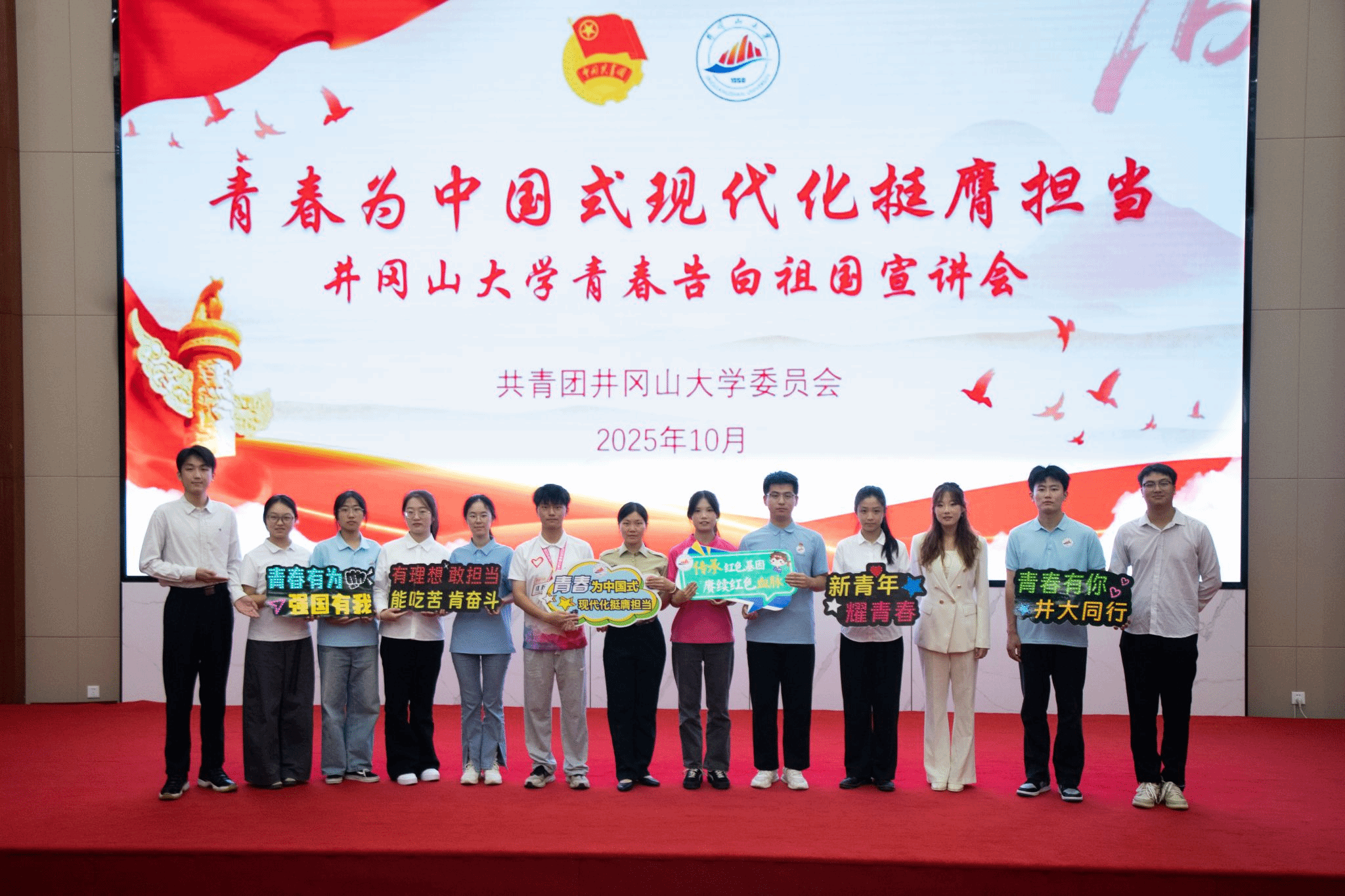 为深入学习贯彻党的二十届四中全会精神,传承红色基因,厚植青年学生爱国主义情怀,展示井大学子与祖国共奋进的青春故事,10月29日下午,由校团委组织的“青春为中国式现代化挺膺担当”——青春告白祖国宣讲会在新图书馆报告厅举行。“映山红”大学生骨干宣讲团成员,校团委学生会工作人员,各学院青年学生代表等300余人参加了活动。