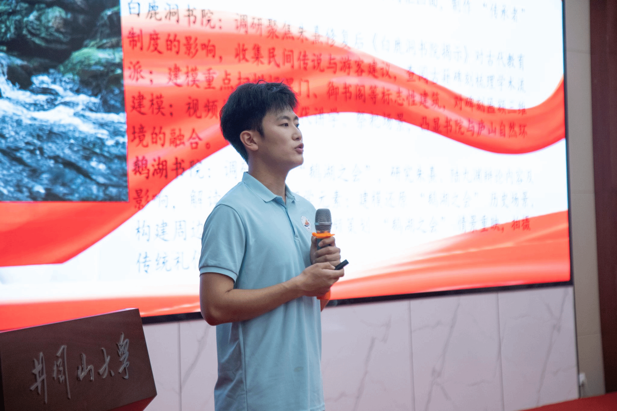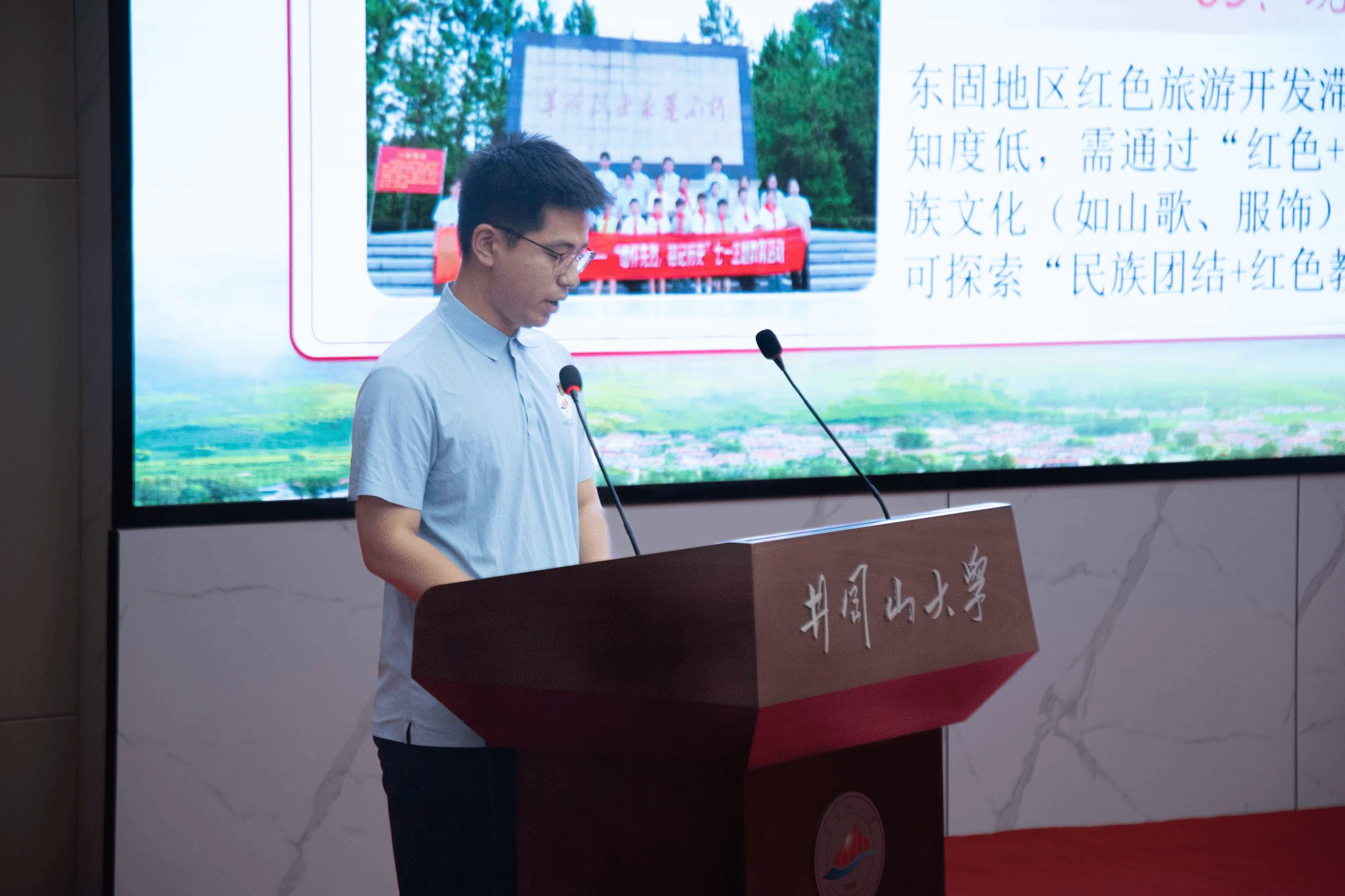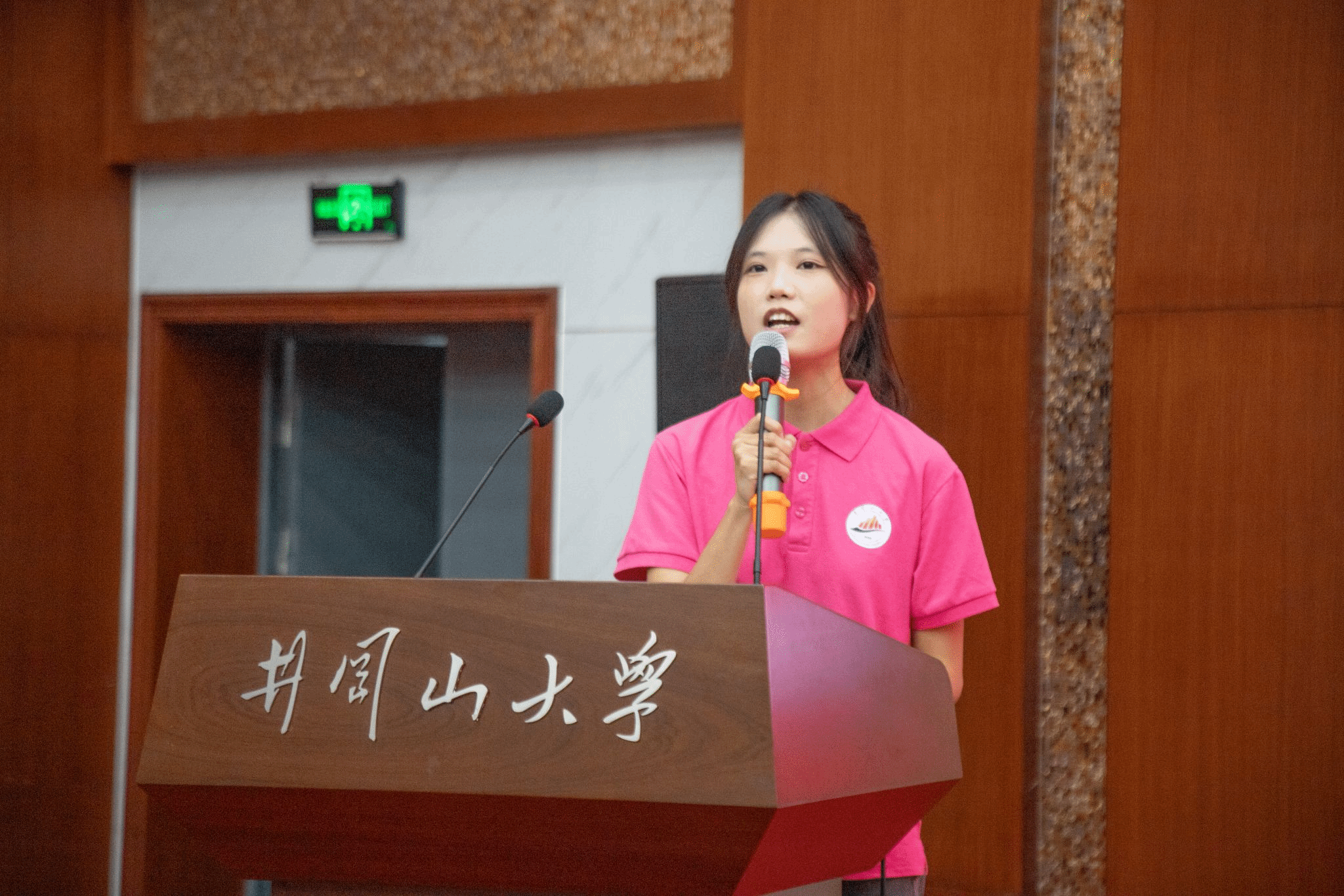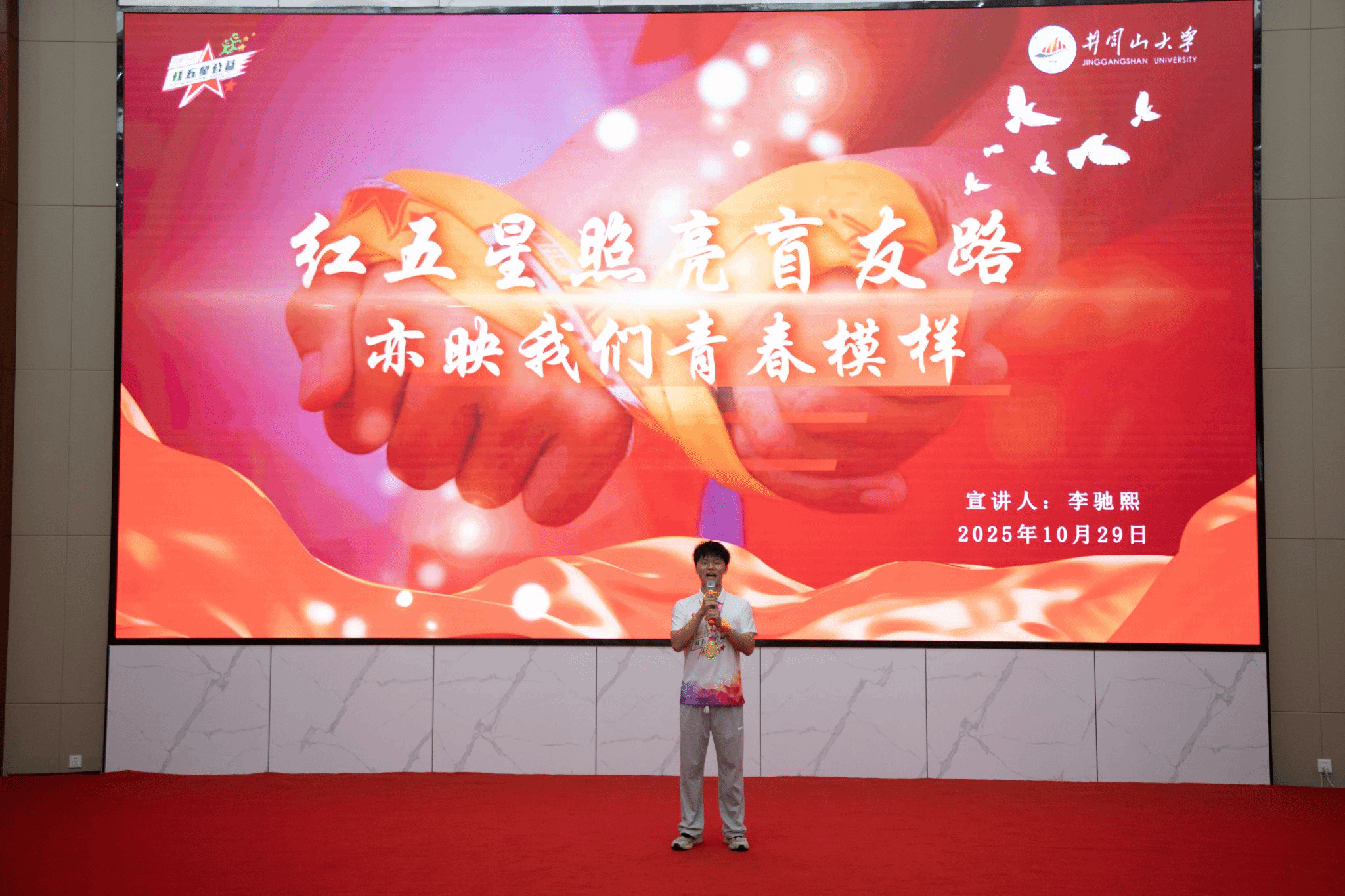 首批“映山红”青年实干家代表、政法学院的朱家兴以《青春扎根基层,将论文写在祖国大地上》为题,围绕兴桥镇乡村振兴品牌项目打造,钓源古村文化传播工作及基层精神传承等实践经历,展示了青年实干家扎根基层,以“三实”助力乡村发展,传承井冈山精神的担当与决心。退伍军人、马克思主义学院曾庆萍以《以青春之名,赴国防之约》为题,结合参军入伍,备战考研及红色实践等多重经历,讲述了她从迷彩绿到学术蓝的身份转变历程,她始终以军人担当践行国防使命,以青年热忱传承红色精神,彰显了退伍不褪色,青春献国防的坚定信念与责任担当。红五星助盲跑团成员、数理学院的李迟熙以《红星照亮盲友路,亦映我们青春模样》为题,讲述他们以“高校教师+视障人士+大学生志愿者”模式进行助盲行动,志愿者们通过助盲跑、暖心陪伴、艺术疗愈法等方式,以奉献青春的方式,帮助盲人群体丈量世界,感受世界的温暖。暑期思政实践团成员、马克思主义学院的王梦璇以《青言青语薪火传,畲乡苏区聚同心》为题,分享了实践团深入畲族地区开展红色寻访与思政实践的经历,通过实践活动,让她深化了对苏区精神、井冈山精神的理解,也展现青年群体挖掘畲乡红色资源,助力文化传承,以青春力量为畲族地区的发展注入活力的责任担当。