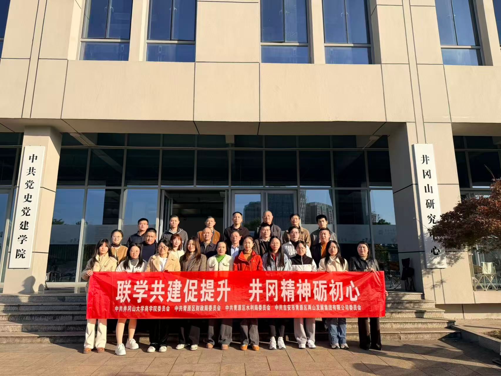 为深入学习贯彻党的二十届四中全会精神,深化党建引领下的校地、校企协同合作,凝聚资源共享、优势互补的发展合力, 11月26日,商学院与青原区财政局、青原区水利局、吉安市青原区两山发展集团有限公司(以下简称“两山集团”),联合开展党建联建活动。四家单位相关领导及代表以“理论联学+计划共商+实地研学”的模式,明确多元合作方向,推动党建工作与业务发展深度融合,为后续长效合作奠定坚实基础。