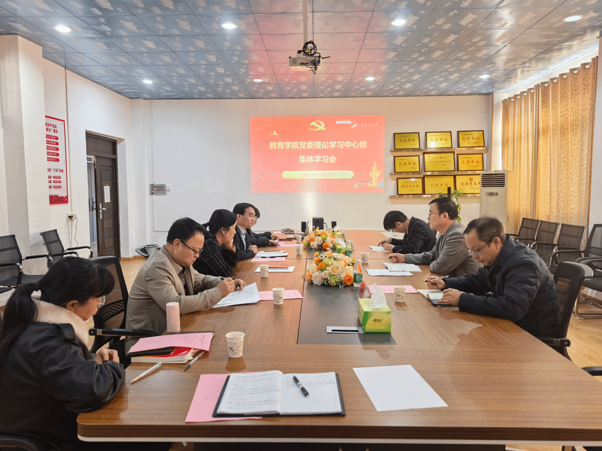 11月26日下午,教育学院党委理论学习中心组围绕“党的二十届四中全会精神”这一主题开展学习。校巡听旁听组长,校党委常委、副校长段学民到场巡听旁听指导,学院党委理论学习中心组成员和巡听旁听组成员参加。