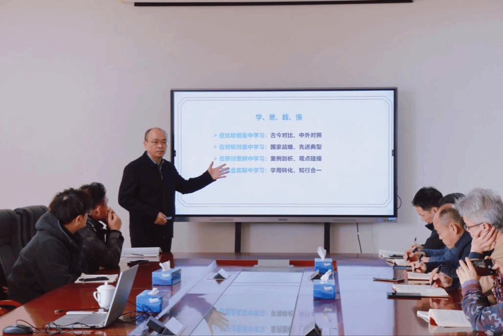 黄族豪从深刻领会党的二十届四中全会的重大意义,精准把握“十五五”时期经济社会发展的指导思想、主要目标、战略任务和重大举措,奋力推动党的二十届四中全会精神在学校落地见效等方面进行了系统深入的阐释,指出当下发展环境复杂多变,强调其中机遇与挑战并存,我们要保持战略定力,以历史主动精神应对考验。同时,他还强调,学院发展需遵循“师生为本、服务至上、守正创新、争创一流”原则,聚焦高质量发展,贯彻科学谋划、创新驱动和追求卓越等要求,把不可能变成可能,把可能做到极致,让极致成为常态。
