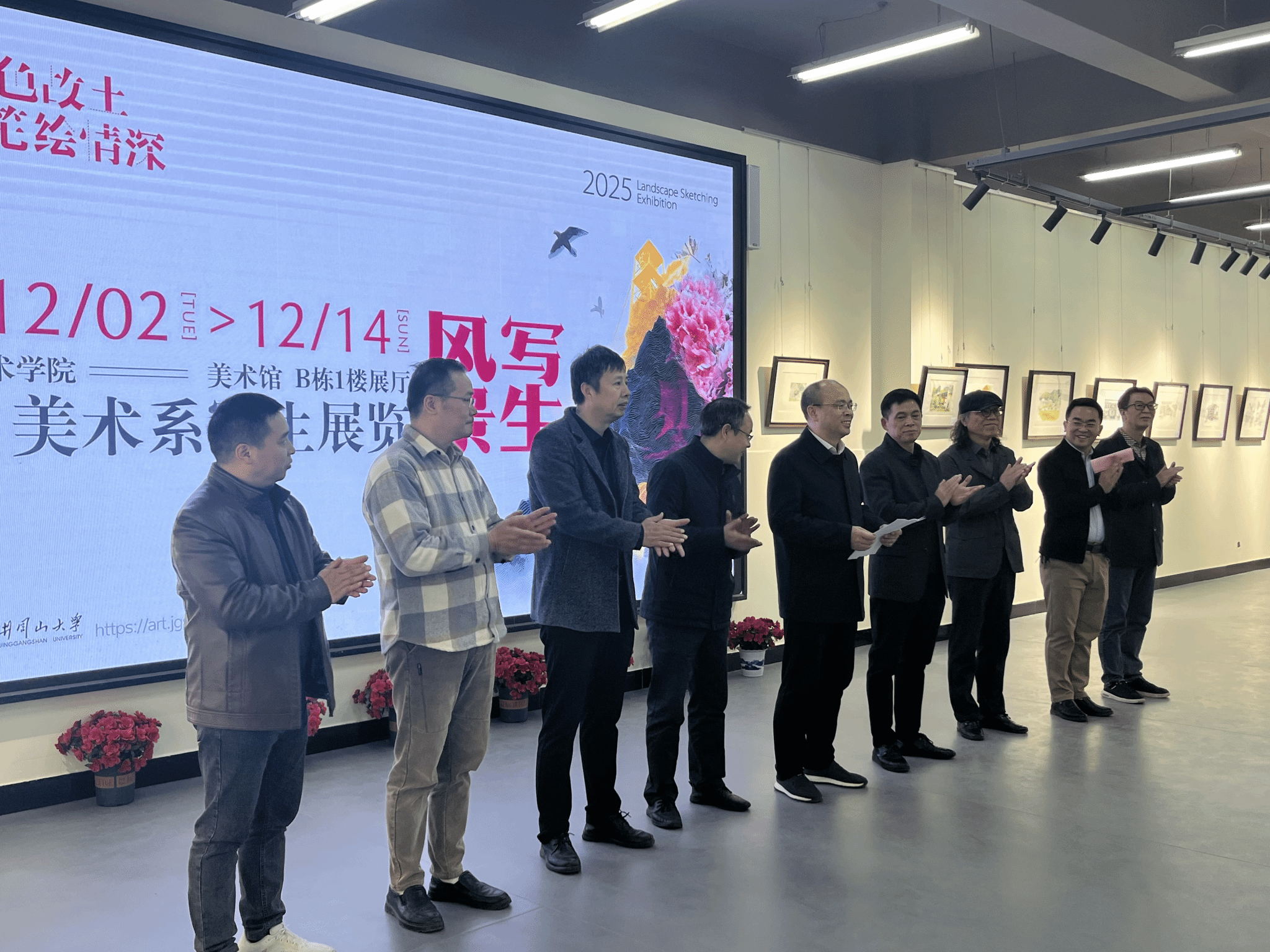 12月3日,艺术学院2024级美术系学生风景写生优秀作品展开幕仪式于艺术学院美术馆隆重举行。校党委常委、副校长黄族豪,教务处处长王新长、艺术学院党委书记周兴海、院长康煜等校院领导及部分老师共同参加了开幕式,开幕式由艺术学院副院长程宝飞主持,黄族豪副校长对学生们的作品进行了点评,给予了充分认可,并宣布此次展览开幕。