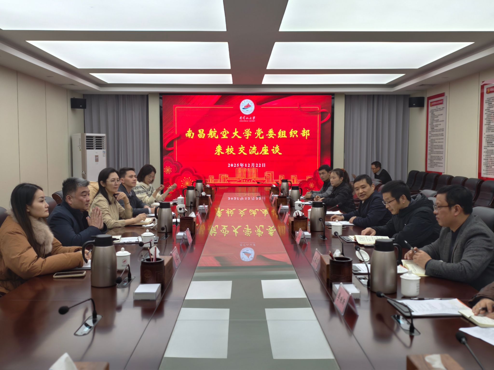 12月22日下午,南昌航空大学党委常委、组织部部长李淑贤一行来我校考察交流。校党委副书记肖宜安会见了李淑贤一行。学校党委组织部全体成员及马克思主义学院分管红色场馆建设的相关负责人参加座谈。