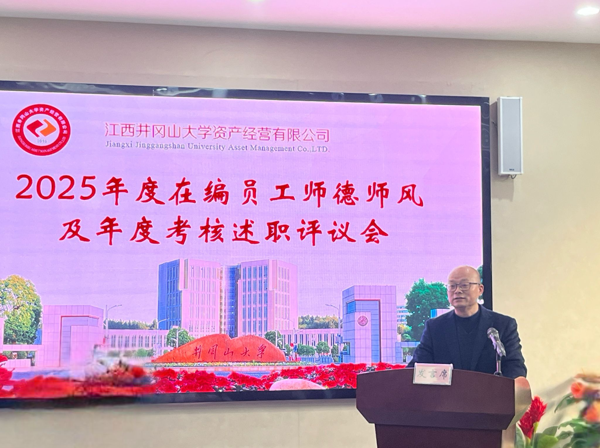 为总结成绩、分析不足、谋划发展,根据学校相关工作要求,12月23日上午,资产经营公司在二楼会议室召开2025年度师德师风及年度考核述职评议会。校党委常委、副校长、公司党委书记段学民出席并讲话,总经理曾学锋主持会议,其他班子成员、全体在编员工及各部门、经营实体代表共计40余人参会。