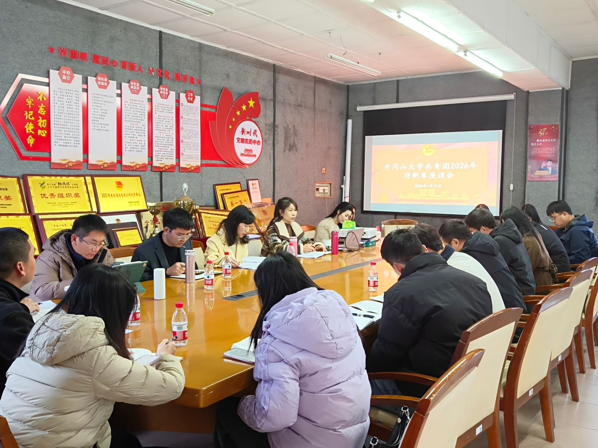 为全面总结2025年学校共青团工作成效,科学部署寒假及2026年重点工作,凝聚基层共青团工作合力,1月12日下午,井冈山大学共青团2026年迎新春座谈会在团委6栋会议室召开。校团委书记郭敏娜主持会议,校团委全体成员、各学院基层团委书记及团委负责人参会。