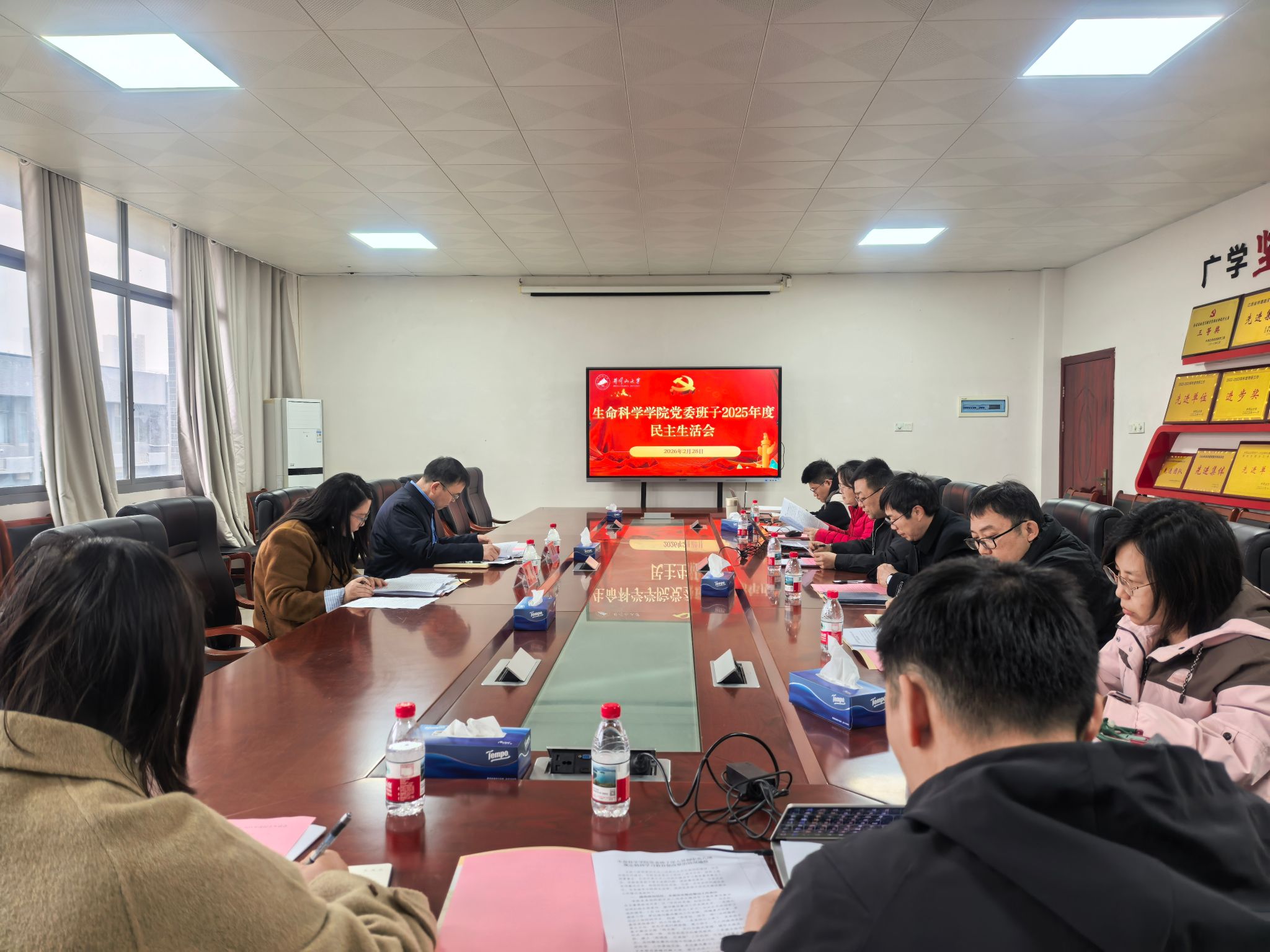 2月28日,生命科学学院党委班子召开2025年度民主生活会。校督导组组长、校党委常委、副校长段学民,督导组成员张喻到会指导,学院党委班子成员参会,6名党员群众代表列席会议。会议由学院党委书记郭建峰主持。