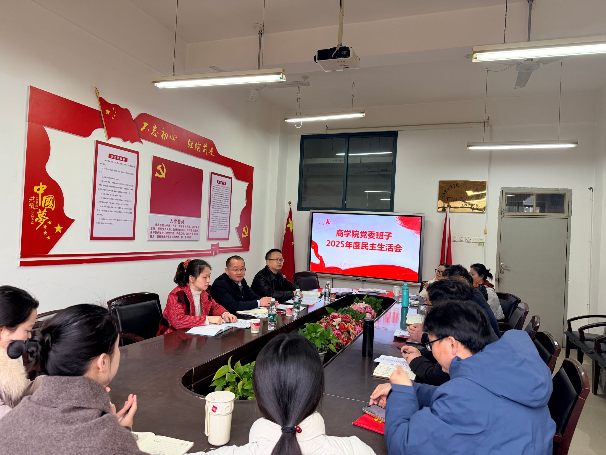 2月28日上午,商学院党委班子召开2025年度民主生活会。校党委委员、副校长、督导组组长敖四江,督导组成员吴翔明、张雯到会指导。商学院党委书记苏小河主持会议并作表态发言,学院党委委员参加会议,非党员班子成员、党员师生代表共计7人列席会议。