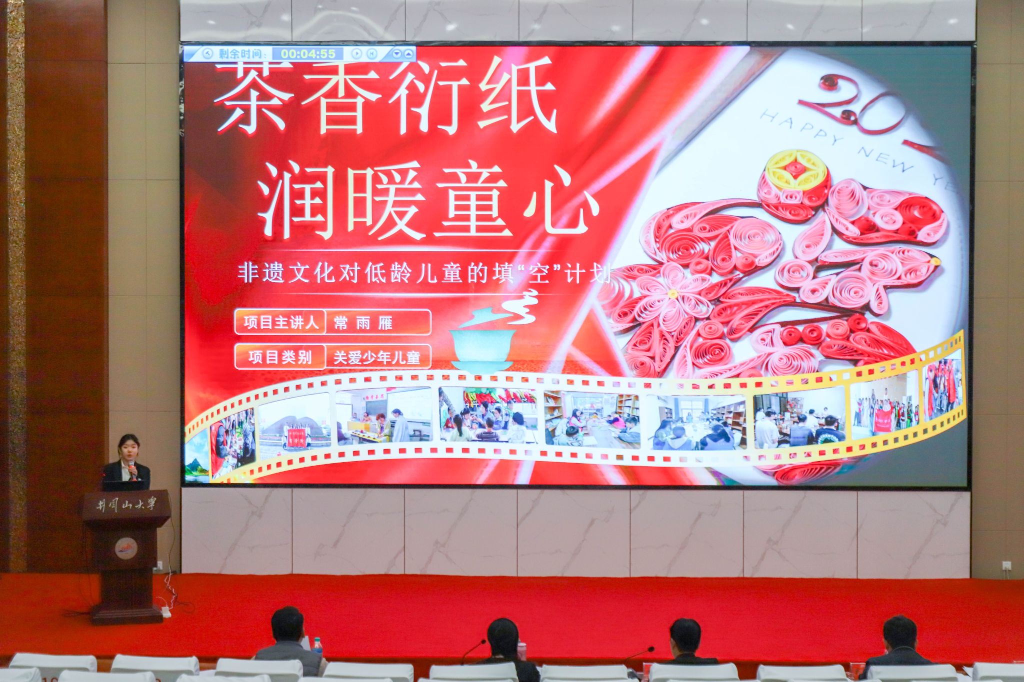 比赛中,来自各学院、学生社团的27个志愿服务项目同台竞技,通过PPT项目展示、现场答辩的形式,展现了井大青年扎根基层、服务社会的责任担当。项目涵盖了社区服务、乡村振兴、环保公益、文化传承、关爱帮扶等多个领域,将专业知识与志愿服务深度融合,充分展现了我校学子在志愿服务中的创新精神与实践能力。项目展示结束后,评审老师从项目立意、实施过程、社会影响、可持续性等方面进行了细致点评,提出了很多建设性意见,希望今后更加注重项目实效与长效机制的构建,推动志愿服务从“活动化”向“项目化”“品牌化”转变。经过激烈角逐,大赛最终评选出金奖1项、银奖3项、铜奖5项。