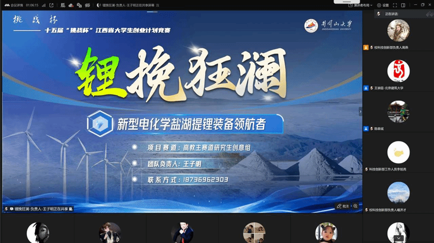 本次选拔赛严格遵循省级竞赛评审标准,采用“5分钟作品展示+1分钟修改说明+5分钟专家提问”的路演答辩流程,确保评审专业、规范、公正。20支参赛团队聚焦生物医药、先进制造、新材料、乡村振兴、社会治理以及文化传承等多个领域,依次进行线上汇报,全面展示项目的技术创新、市场前景与社会价值,充分彰显了我校学子敢闯敢创、善作善成的创新创业风采。