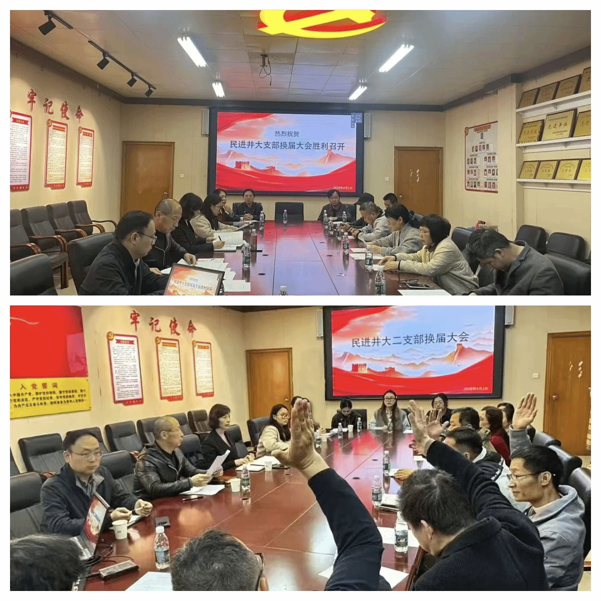 4月2日,民进井冈山大学第一、第二支部分别召开换届大会。吉安市政协副主席、民进吉安市委会主委管萍,民进吉安市委会秘书长刘琦应邀出席会议。会议由民进井冈山大学总支主委杨树林主持。