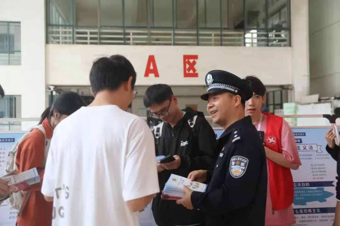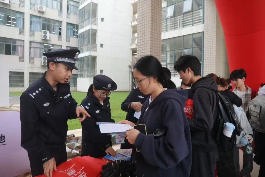活动现场,各单位工作人员立足工作实际联动协作,通过设置主题横幅、摆放教育展板、发放宣传手册及趣味问答等多种形式,针对不同安全领域开展精准宣讲,为现场师生送上一份内容丰富的“安全大礼包”。