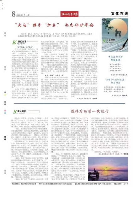 9月14日,江西卫生健康报第八版以近半版的篇幅,以《“大白”携手“红衣” 矢志守护平安》为题,报道了我校附属医院抗疫事迹。