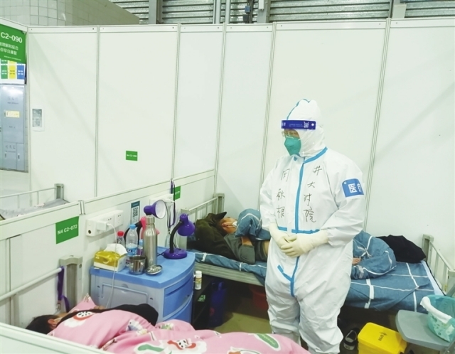 井冈山大学附属医院周秋根医师在上海方舱医院“安静”查房。彭晓露摄