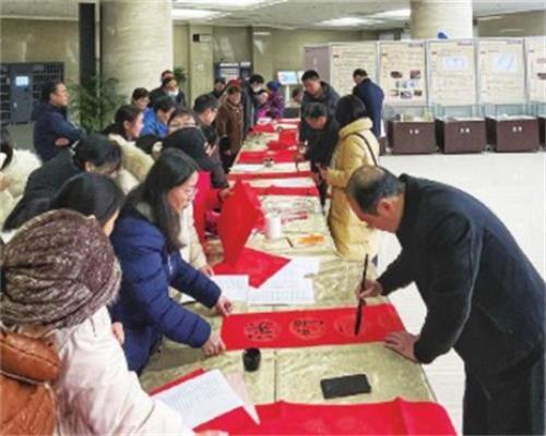 1月10日,井冈山大学图书馆大厅翰墨飘香,由市书法家协会、井冈山大学工会、井冈山大学直属单位党委联合主办的"同心同书·祖国新春好"送万福进万家活动走进井冈山大学。6位书法家饱蘸浓墨,尽情挥毫,为广大教职员工书写春联,营造喜庆祥和的文化氛围和节日气氛。马于强摄