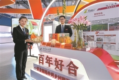 图说:10月14 日,国际大学生创新创业成果展上,井冈山大学项目团队在介绍产品。本报记者 张劲松 摄