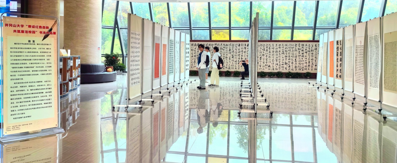5月27日,由井冈山大学党委宣传部、纪委、直属单位党委、图书馆等联合举办的“赓续红色血脉 共筑廉洁校园”为主题的廉洁文化书法作品展在图书馆一楼大厅展出,共展出书法作品40余件。