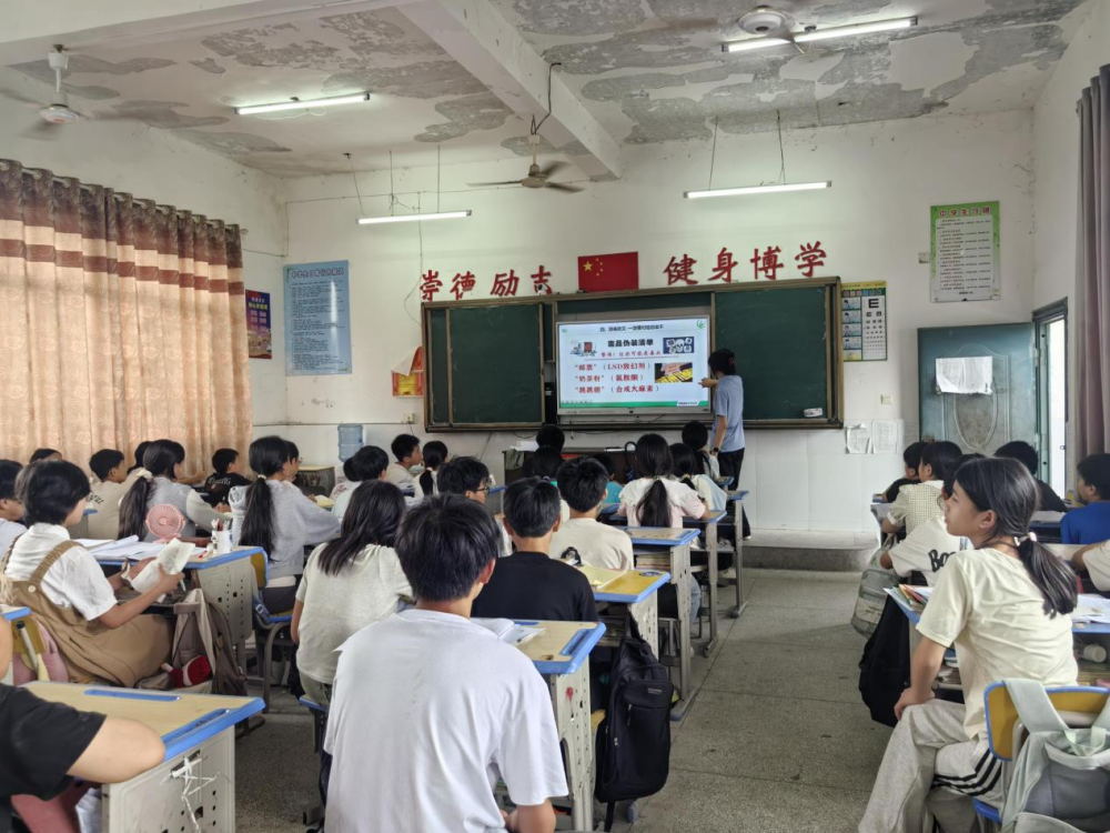 井冈山大学护理学院16名大学生走进青原区城北学校、东固民族黄公略红军中学、东固民族黄公略红军小学,为1200余名初中生开展禁毒课堂宣讲,通过大量的鲜活案事例向中小学生揭示毒品危害,帮助中小学生树立禁毒意识。