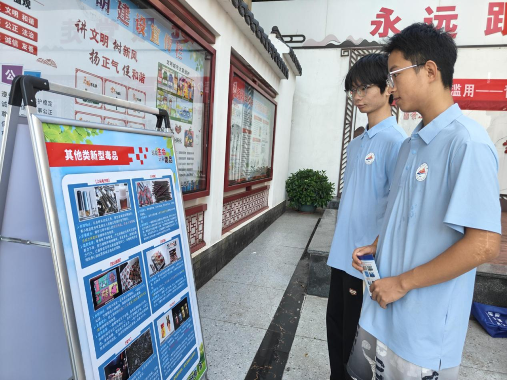 6月26日,国际禁毒宣传日当日,实践队走进案山社区,联合当地司法局、禁毒大队为市民开展禁毒普法宣传。活动现场,禁毒民警放置了毒品样品和禁毒宣传展板,学生们通过实物讲解,进一步认识到毒品对个人和社会的严重危害。