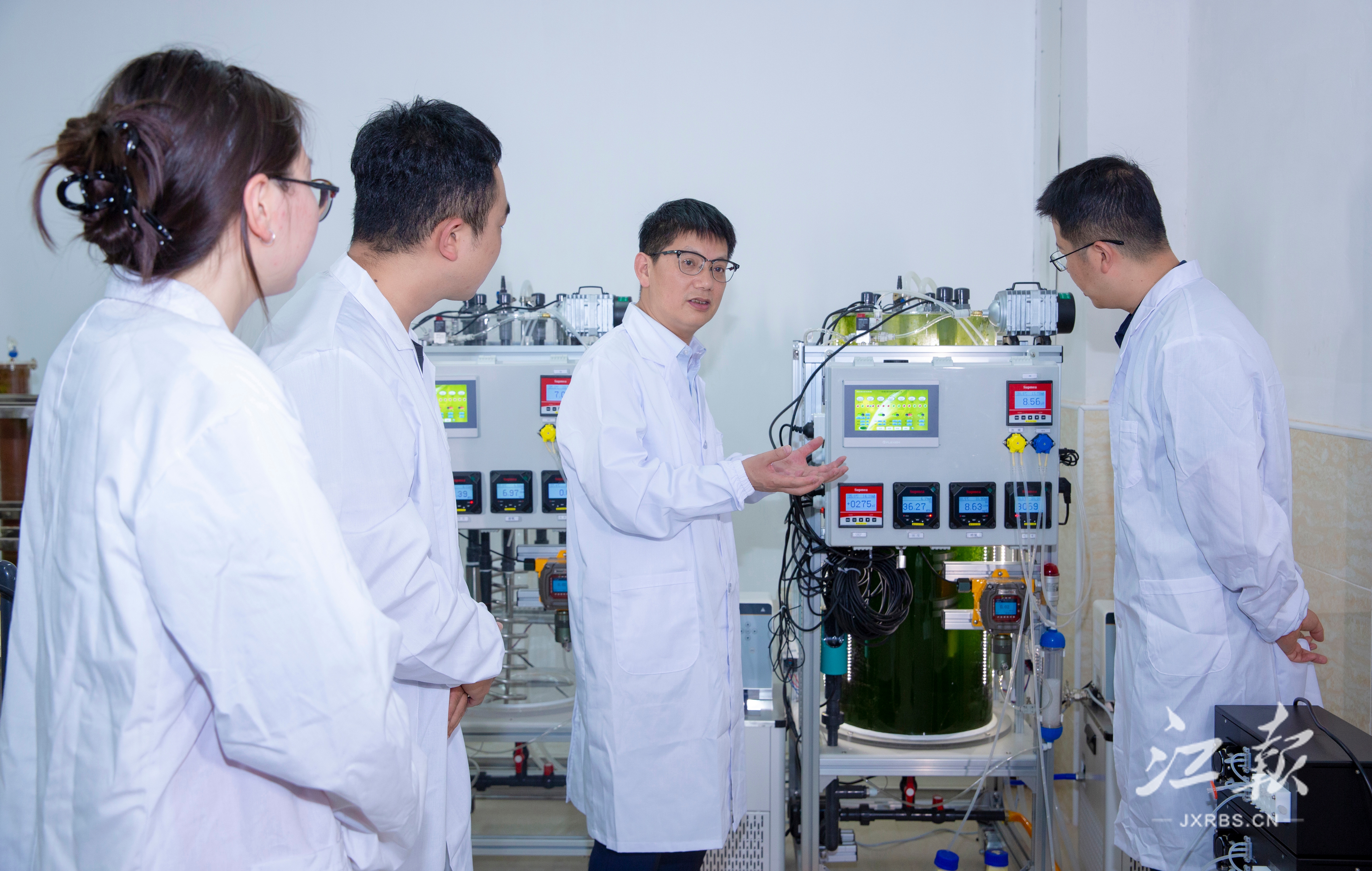 罗旭彪团队利用环境因子可控式柱状光生物反应器促进稀土中微藻原位培养 井冈山大学党委宣传部供图