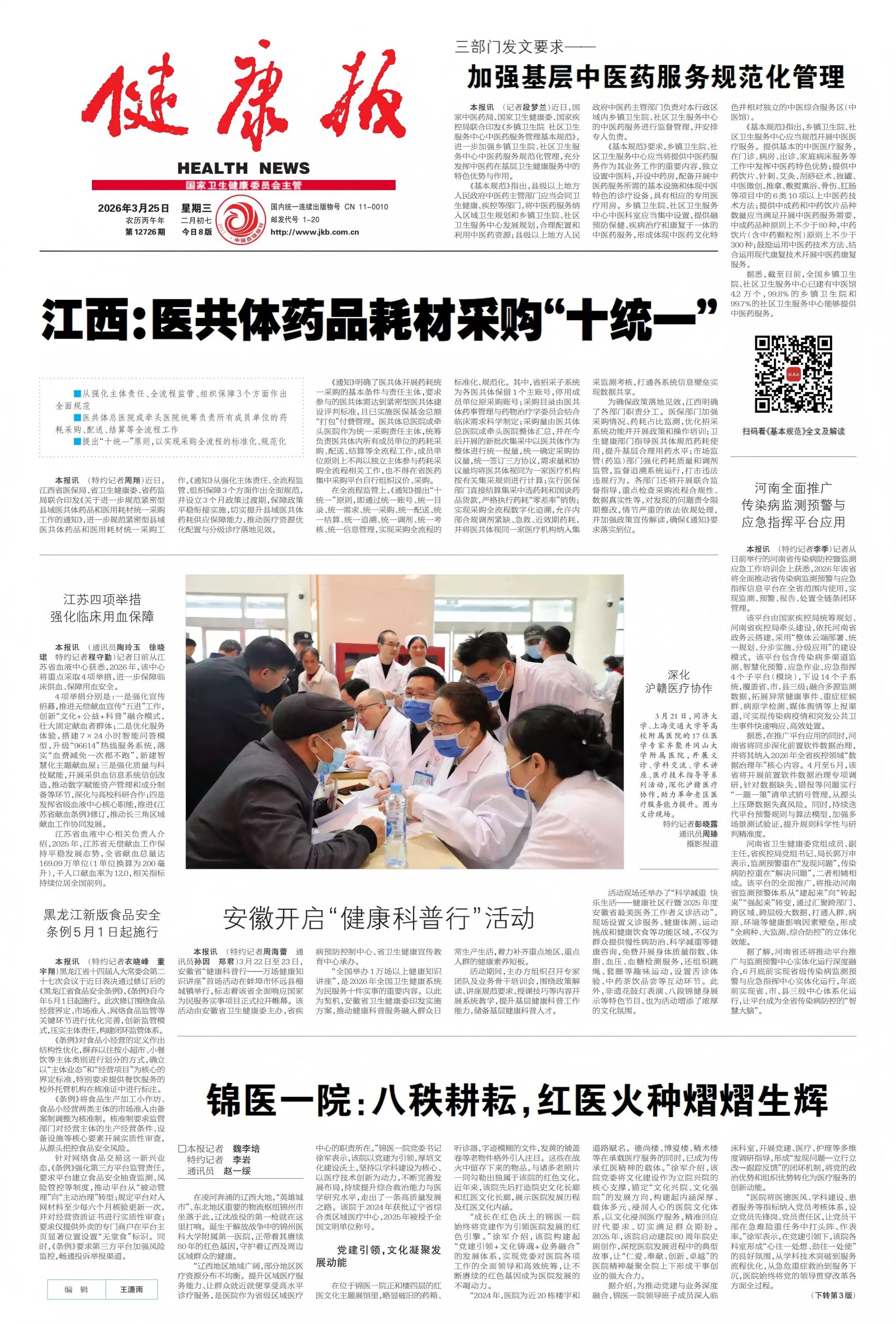 3月21日,同济大学、上海交通大学等高校附属医院的17位医学专家齐聚井冈山大学附属医院,开展义诊、学科交流、学术讲座、医疗技术指导等系列活动,深化沪赣医疗协作,助力革命老区医疗服务能力提升。图为义诊现场。