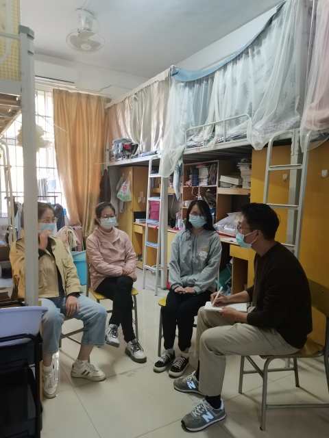 除此之外,梁烯每天都会走访一次学生寝室,关心在校学生的学习和生活,及时了解他们身心健康、学习状况。在封校初期,有少部分学生对每日的核酸检测工作不甚理解,且存在抱怨。梁烯借助走访寝室的机会,认真向学生宣讲学校的疫情防控政策,引导他们理性认识疫情的严峻形势,积极配合学校疫情防控举措,同时,征求学生的意见建议,以此用来改进平时的工作方法。在梁烯的暖心关怀和耐心引导下,同学们慢慢适应了“封闭式”的校园生活,逐渐凝聚起了校园疫情防控的强大合力。