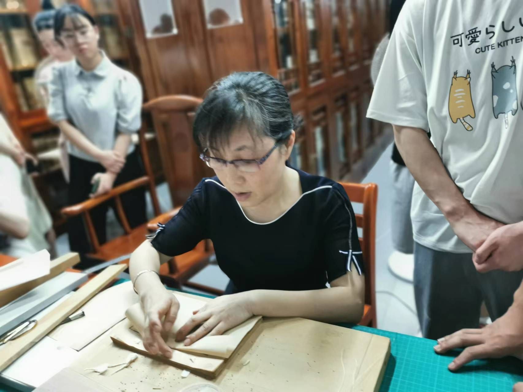 ——她致力于古籍修复技艺的传承传习。通过学校实践教学第二课堂、勤工俭学等机制,累计培训在校学生11人,参与古籍修复与保护工作;采取互动体验方式,每年举办雕版印刷、线装书装订、手抄经典等体验活动,让师生近距离感受古籍之美。
