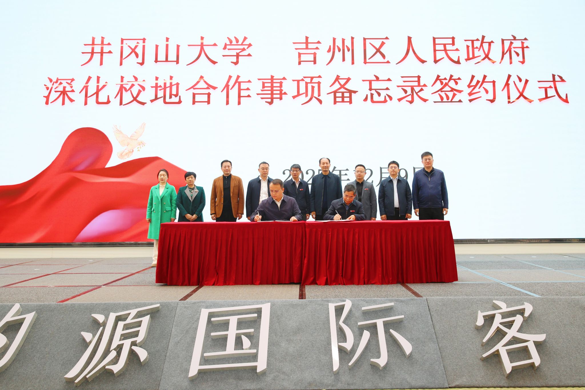 12月9日上午,《井冈山大学与吉州区人民政府深化校地合作事项备忘录》签约仪式在钓源国际客厅举行。校党委书记罗旭彪,党委副书记肖宜安,党委常委、副校长段学民;吉州区委书记尹冬苟,区委常委、常务副区长肖莺华,以及双方有关单位主要负责同志出席活动。仪式由段学民主持。此次签约是双方贯彻落实党的二十届四中全会精神的具体行动,标志着校地合作进入全面深化、协同共进的新阶段。罗旭彪对吉州区委、区政府长期以来的支持表示感谢。...