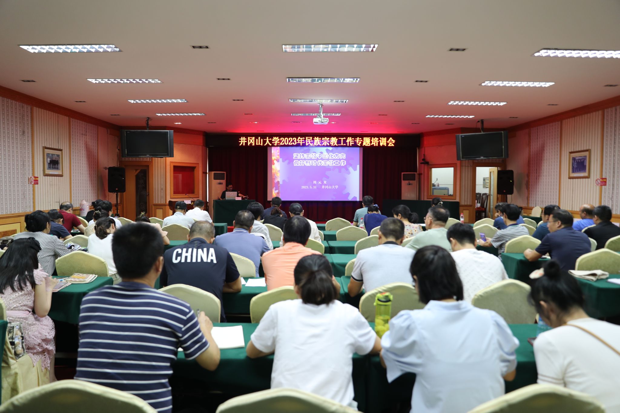 为学习贯彻党的二十大精神,落实中央、省委关于民族宗教工作的决策部署,学校于5月下旬开展了民族宗教工作专题培训,邀请了吉安市民族宗教事务服务中心副主任、民族宗教事务局副局长周元龙和学工处李刚老师分别作了专题讲座。校党委常委、统战部部长刘梁军主持培训会并提出了工作要求,学校各基层党委主要负责人、统战委员和各教学学院(部)的学生科科长、辅导员代表以及党委统战部成员近70人参加了培训。周元龙以《坚持宗教中国化方向 ...