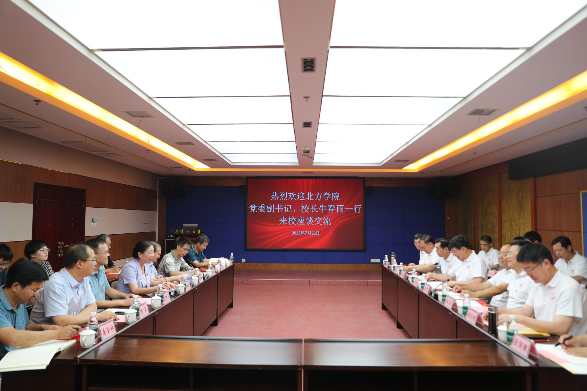 7月22日,河北北方学院党委副书记、校长牛春雨,副校长张辉,纪委书记张彪,党委常委、副校长任亮、孙洪生、刘子刚,率该校有关部门学院主要负责人来校,就学科专业建设等进行考察交流。我校党委书记胡春晓,党委常委、副校长黄俭根,党委常委、组织部长欧阳杰出席了座谈交流会。胡春晓代表学校党政对牛春雨一行来校考察交流表示欢迎,她介绍了学校的基本情况,重点介绍了学校校地合作的基本情况。她表示,两校有许多共同点,今后要进一步加强交流沟通,...