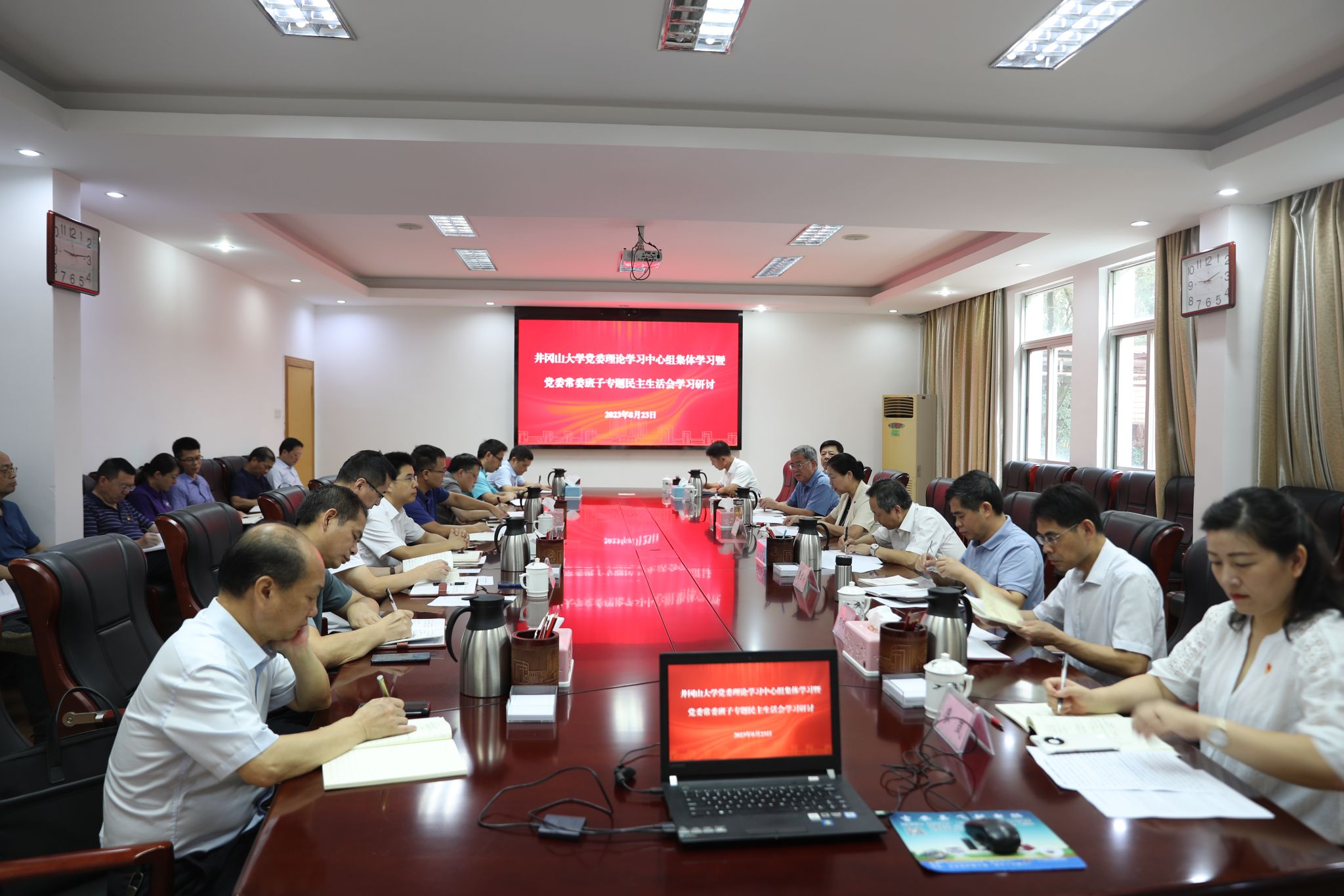 为开好常委班子民主生活会,8月23日,学校党委理论学习中心组开展了集中专题研讨,深入学习习近平总书记关于党的建设的重要思想,关于严肃党内政治生活的重要讲话和重要指示批示精神,以及关于以学铸魂、以学增智、以学正风、以学促干等重要论述;学习习近平总书记关于教育工作尤其是高等教育等重要讲话和重要指示批示精神;学习党章、新形势下党内政治生活若干准则、县以上党和国家机关党员领导干部民主生活会若干规定等党内法规。...