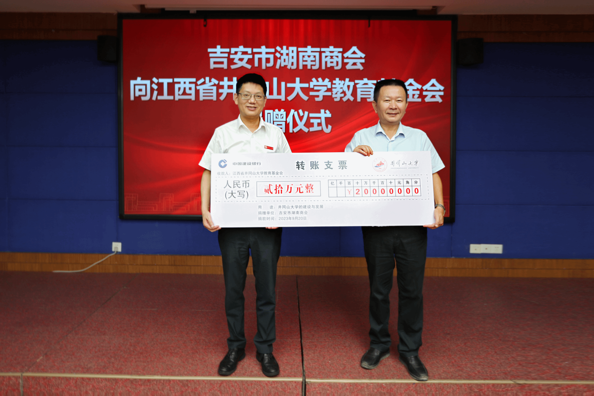 9月21日上午,学校举行捐赠仪式,吉安市湖南商会会长李好学一行代表商会向江西省井冈山大学教育基金会捐赠20万元,用于支持井冈山大学建设与发展。校党委副书记、校长罗旭彪出席捐赠仪式,并向李好学会长颁发了捐赠证书,党委常委、副校长肖宜安主持捐赠仪式。学校党委(校长)办公室、计划财务处、后勤保障处、资产管理处、审计处、对外联络(校友服务)中心、机电工程学院等相关部门负责人参加捐赠仪式。李好学会长介绍了吉安市湖南商会的基本情况,...