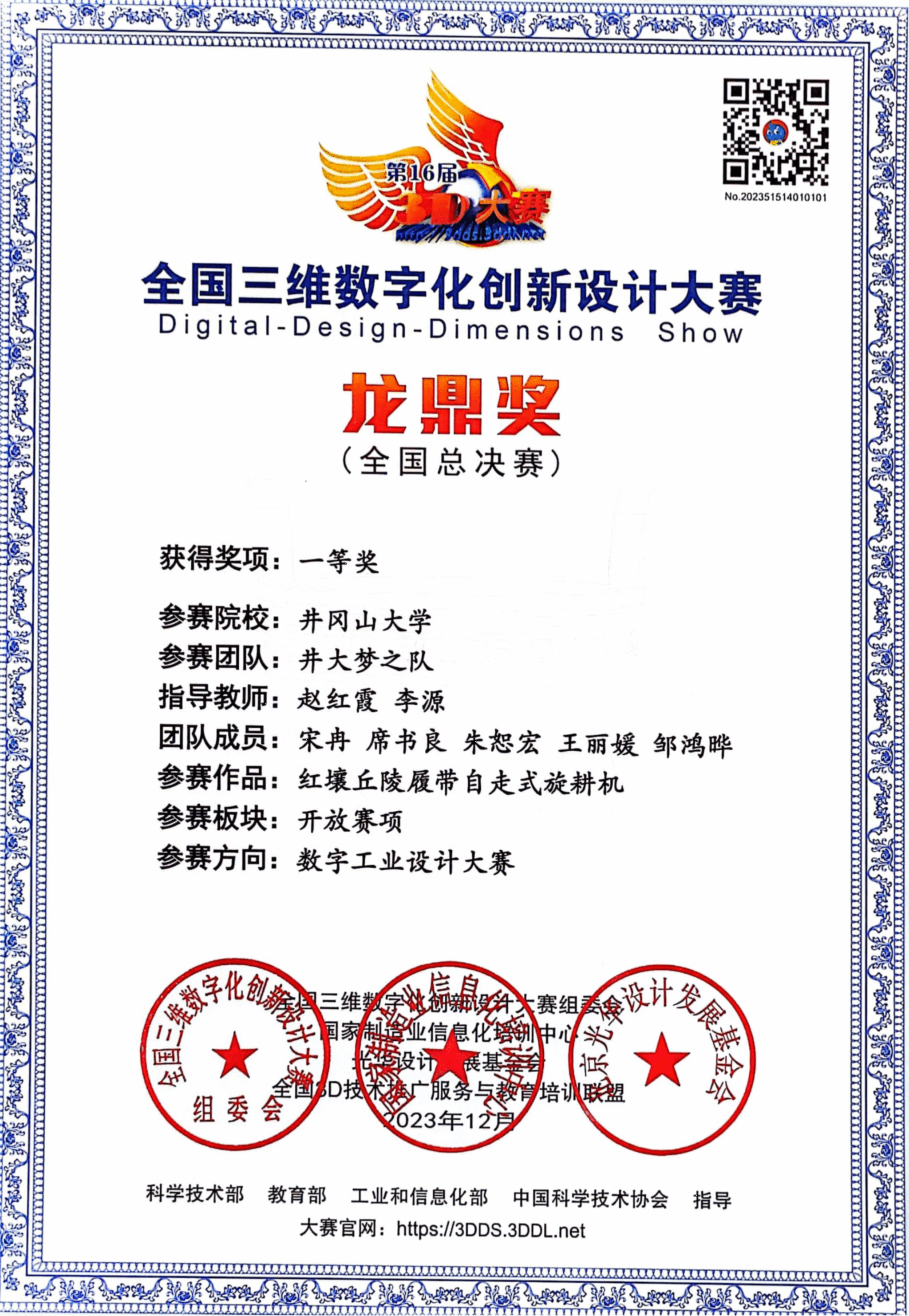 近日,全国三维数字化创新设计大赛组委会公布了第十六届全国三维数字化创新设计大赛年度总决赛结果,我校参加总决赛的2个项目均荣获国赛一等奖。赵红霞教授被评为优秀指导教师。在指导教师赵红霞、李源的指导下,由学生宋冉、席书良、朱恕宏、王丽媛、邹鸿晔设计制作的《红壤丘陵履带自走式旋耕机》;在指导教师赵红霞、康志成的指导下,由学生张伟强、周苏琦、凌继发、何飞、罗晶设计制作的《茶叶研磨机(第二代)》两个项目分别荣获国赛一等奖。...
