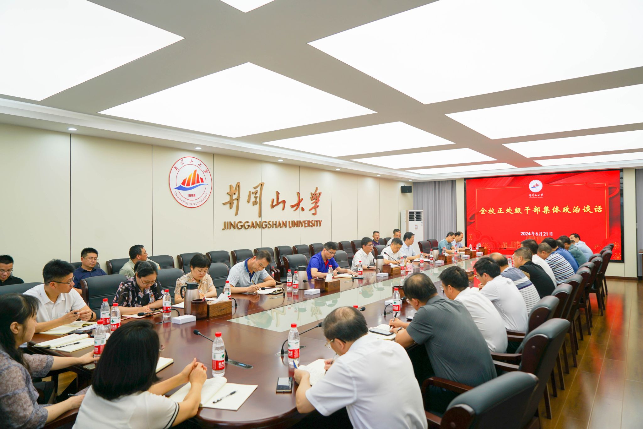 为进一步加强对学校二级单位党政主要负责人和领导班子的政治监督,持续推动学校全面从严治党向纵深发展,扎实推进党纪学习教育取得实效,根据学校党委2024年政治谈话工作安排部署,6月21日下午,学校党委副书记、校长罗旭彪在行政楼三楼2号会议室对学校全体正处级干部开展政治谈话。政治谈话采取集中谈话与个别谈话相结合的方式进行。罗旭彪指出,持续加强“一把手”和领导班子监督,中央有部署,省委有要求,学校党委必须严格抓好落实。...