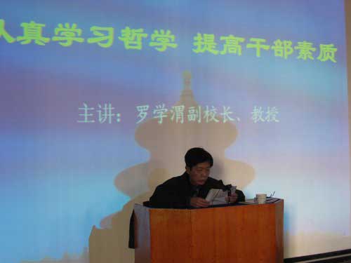 12月21日下午,副校长、教授罗学渭为全校处级干部作了题为《认真学习哲学,提高干部素质》的专题讲座。他从哲学独特的价值和功能、领导干部更需要有哲学思维以及如何学习和运用哲学三个方面进行了深刻的分析,使全校...