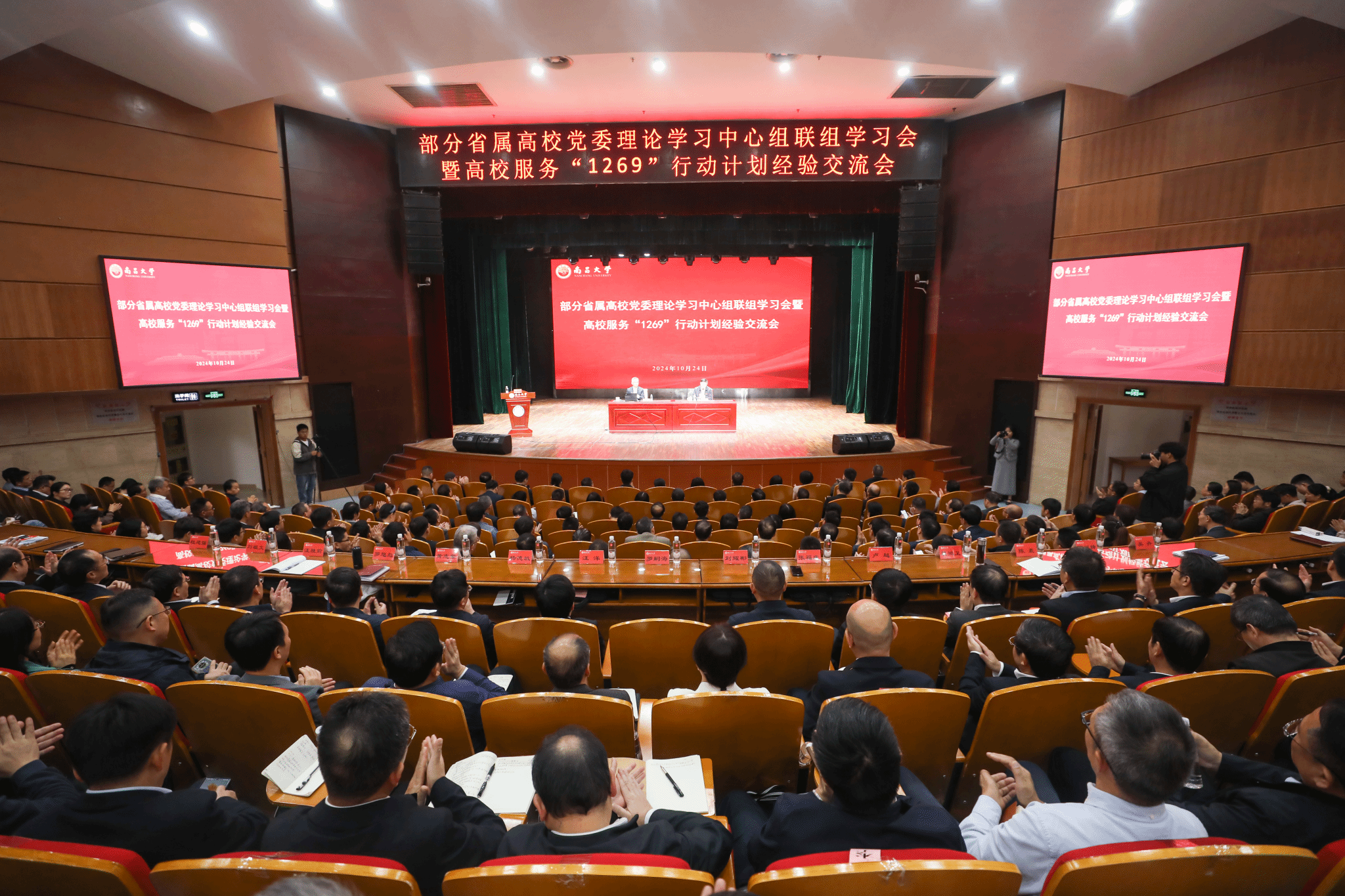 10月24日下午,部分省属高校党委理论学习中心组联组学习会暨高校服务“1269”行动计划经验交流会在南昌大学召开,我校党委理论学习中心组部分成员及有关部门负责人、博士代表共15人参加。党委副书记、校长罗旭彪,党委副书记肖宜安,党委常委、副校长黄俭根,党委常委纪委书记彭西洪,党委常委肖洪海、梁景宏出席。为深入学习贯彻党的二十届三中全会、全国科技大会、全国教育大会精神,持续学习贯彻习近平总书记考察江西重要讲话精神,...