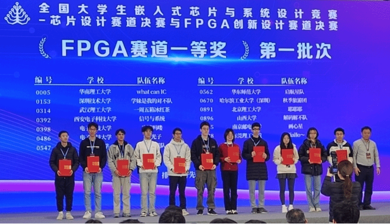 2024年11月29日至12月1日,第七届全国大学生嵌入式芯片与系统设计竞赛FPGA创新设计赛道决赛在江苏南京集成电路培训基地举行,大赛由中国电子教育学会主办,东南大学和南京市江北新区管委会承办。由我校电子信息科学与技术专业范嘉鑫、赵宇洋和谢泽凡三位同学组成的团队(指导教师:肖开选、刘明华)经过激烈角逐荣获全国一等奖,为江西省高校在第七届全国大学生嵌入式芯片与系统设计竞赛FPGA创新设计赛道获得的唯一一等奖。 团队充分发挥我校电子信息专业的优势,...