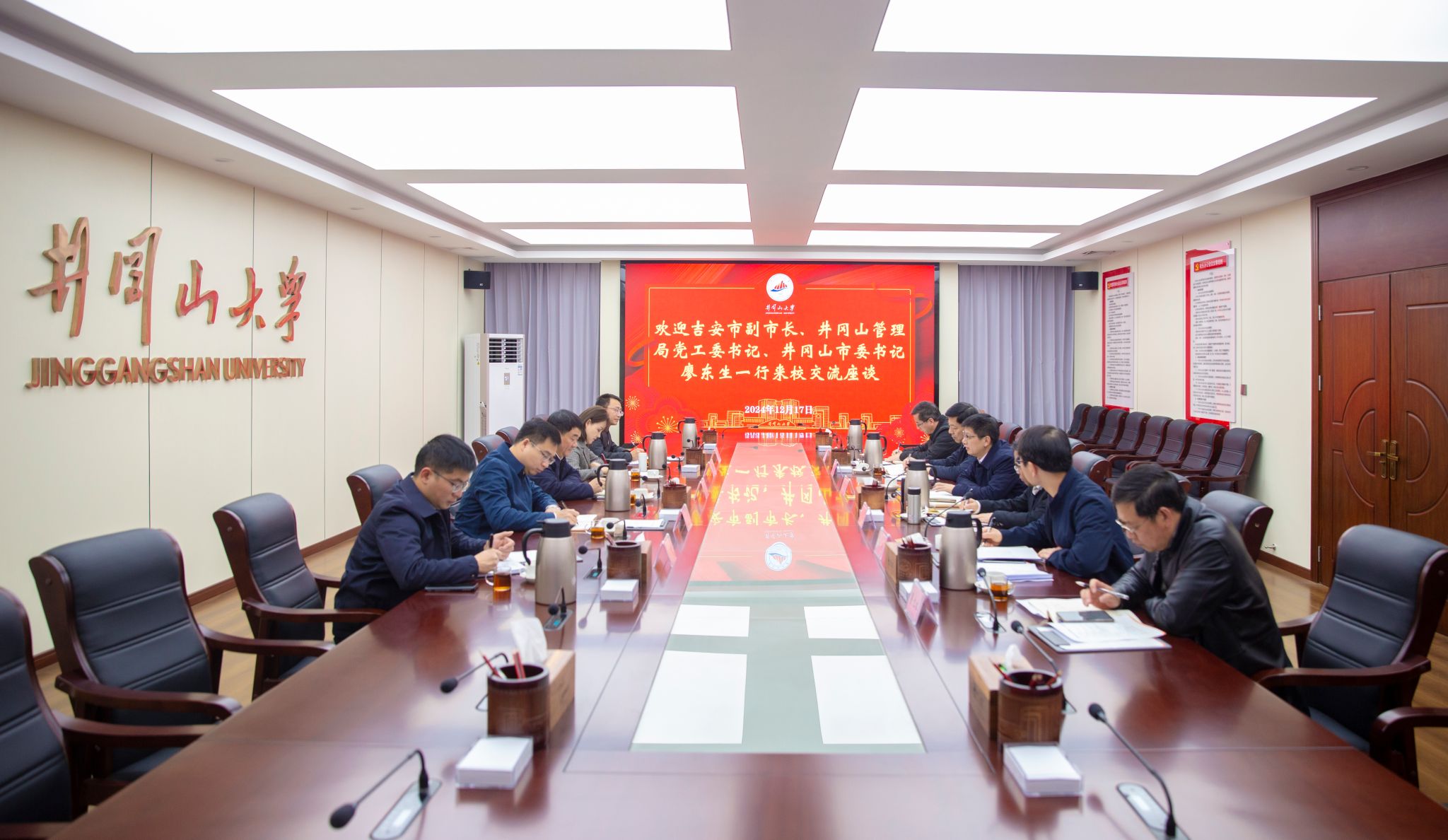 12月17日,吉安市人民政府副市长、井冈山管理局党工委书记、井冈山市委书记廖东生,井冈山市委常委、宣传部部长张艳华,井冈山市人民政府副市长刘欢一行来校就校地合作进行交流访问并座谈,校党委副书记、校长罗旭彪,校党委副书记肖宜安,党委常委、副校长李军,党委常委、副校长冷明,党委常委、宣传部部长肖洪海参加了交流座谈。双方就校地合作相关事项进行了细致交流洽谈。双方认为,作为一所地处吉安市并以井冈山命名的大学,理应在原有合作的基础上开展更加紧密的合作,...