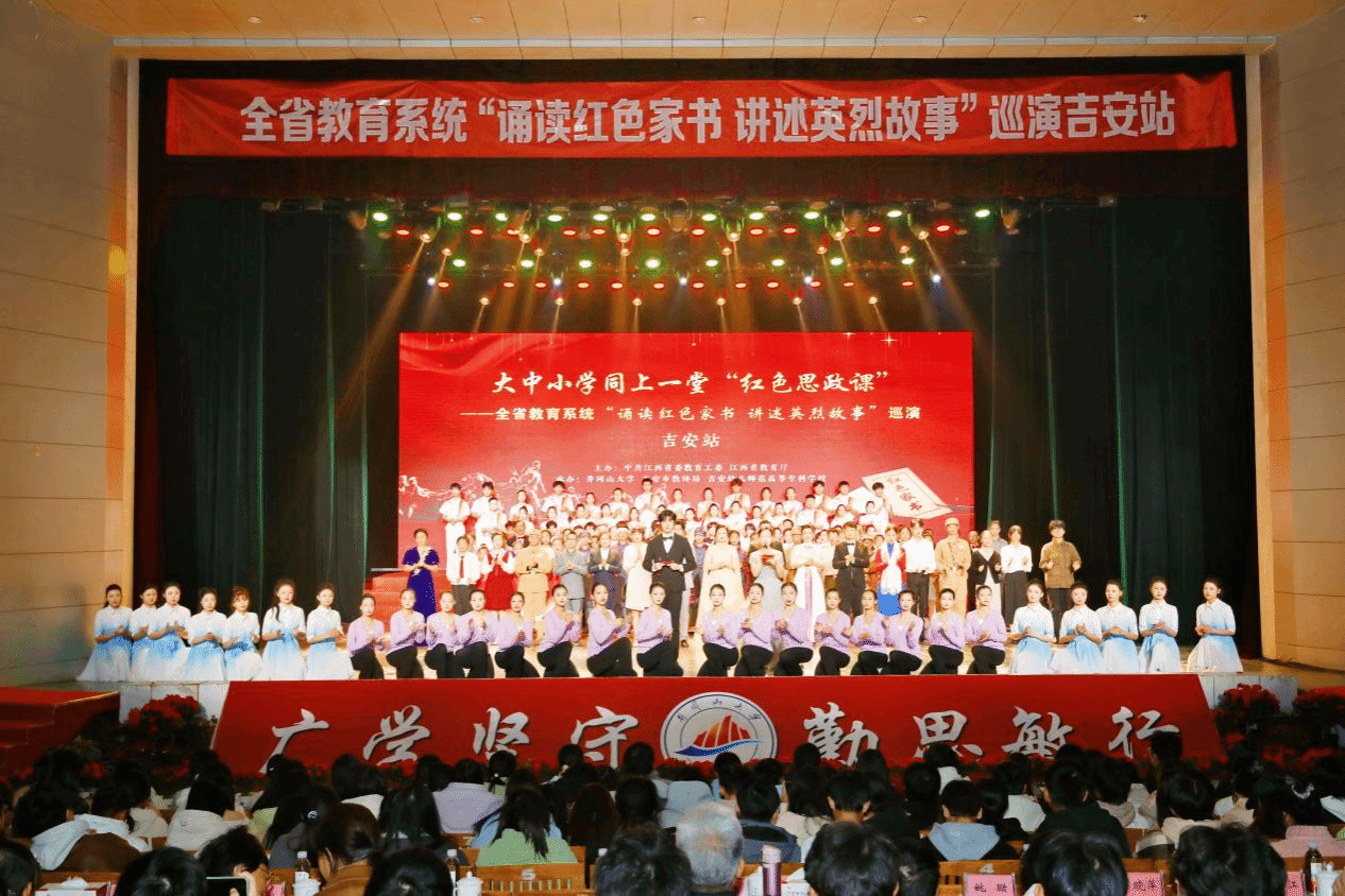 12月13日,是第11个国家公祭日,由江西省委教育工委、省教育厅主办,井冈山大学、吉安市教体局、吉安幼儿师范高等专科学校共同承办的全省教育系统第50场“诵读红色家书 讲述英烈故事”巡演(吉安站)在我校成功举办。省委教育工委委员、省教育厅副厅长汪立夏,校党委副书记、校长罗旭彪,校党委副书记肖宜安,在家的校党政班子成员出席。省委教育工委(省教育厅)有关处室负责人,吉安市教育体育局,吉安部分大中小学的主要领导、参演院校师生代表、...