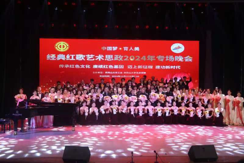 12月25日晚,井冈山大学艺术学院音乐厅内灯火辉煌,座无虚席,一场以“中国梦·育人美”为主题的经典红歌艺术思政专场晚会在这里举行。吉安市政协副主席李金花、吉安市文联主席刘昌荣,井冈山大学党委常委、纪委书记彭西洪,党委常委、副校长敖四江,党委常委、宣传部长肖洪海,以及各学院各部门领导老师、外来嘉宾及学生共计300多人到场观看了晚会。晚会分为上下两篇,共演绎了《没有共产党就没有新中国》《红土香》《打靶归来》和《...