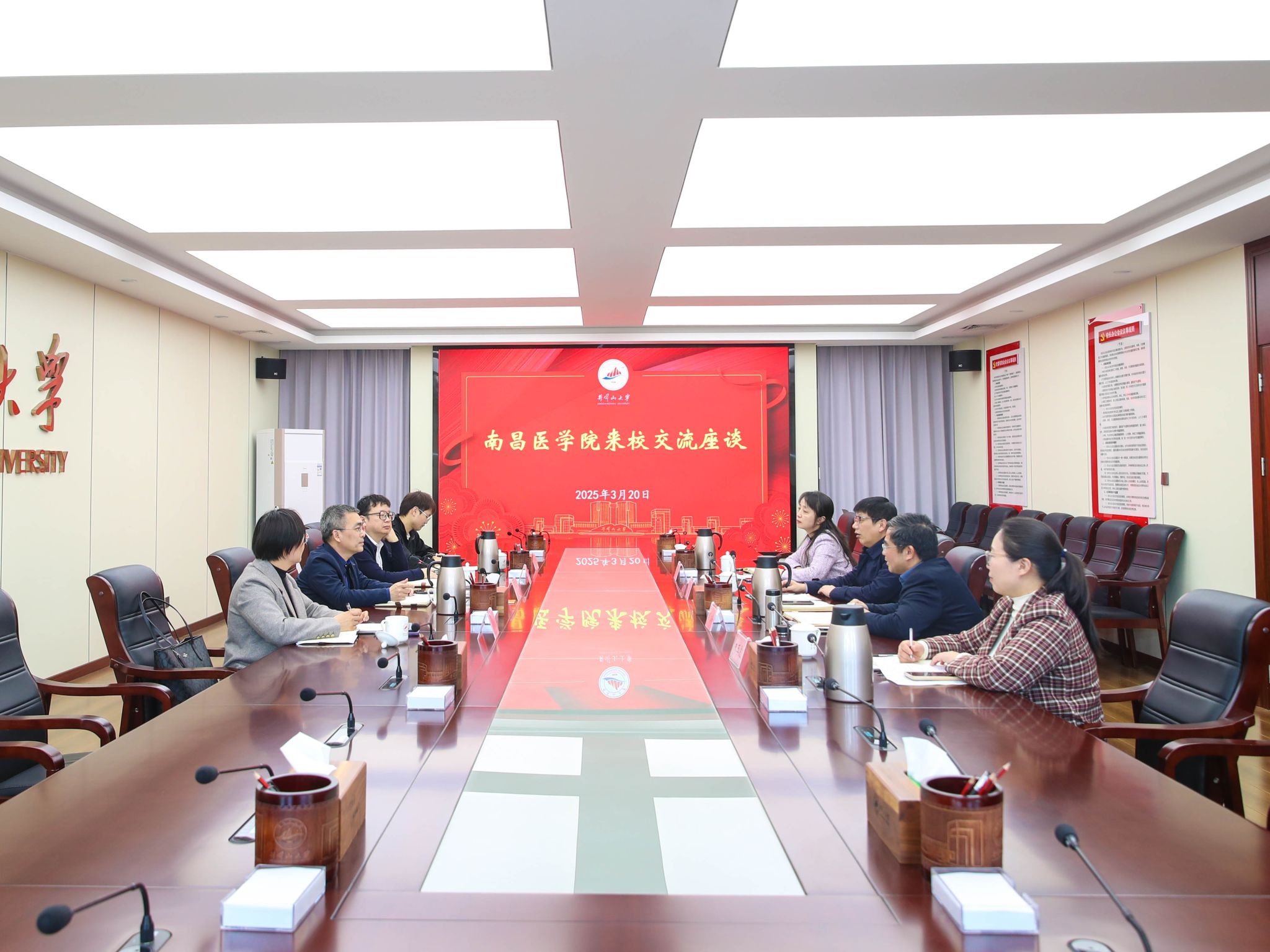 3月20日,南昌医学院党委委员、副院长杨锋一行4人来我校开展交流座谈。双方围绕人事管理、科研协同创新等议题深入探讨,共话高质量发展新路径,为深化两校合作奠定基础。校党委副书记、校长罗旭彪出席,党委副书记肖宜安主持会议。罗旭彪向杨锋一行来校交流表示热烈欢迎,并简要介绍了我校近年来的发展状况,以及是我校在人事管理改革和科研创新方面的一些尝试。罗旭彪表示,南昌医学院是一所具有鲜明医学特色的高等学府,在临床医学教育、...