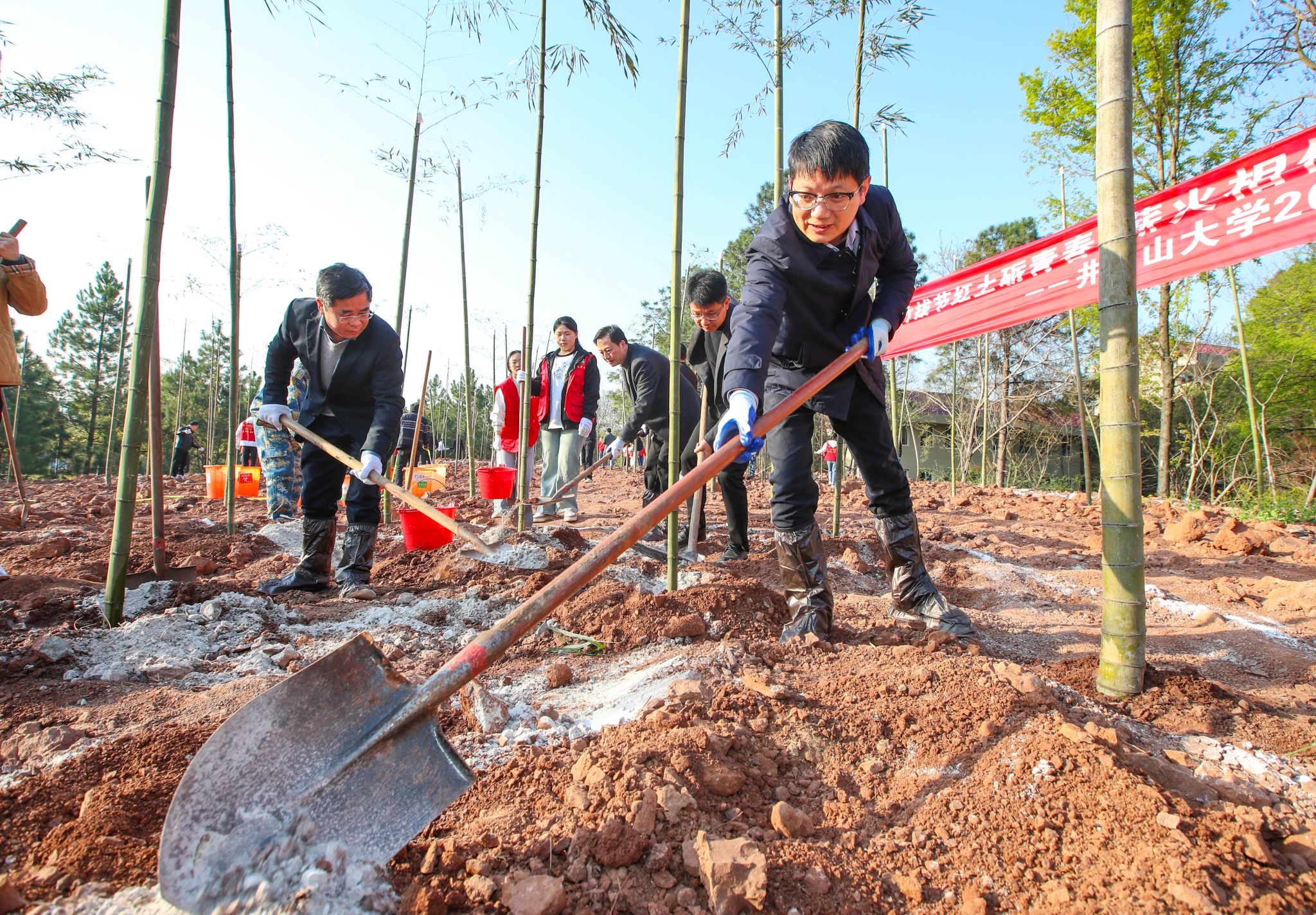 航拍:新建翠竹园全貌“井冈山的翠竹啊,你是革命的竹子!你永远那么青翠,永远那么挺拔……”春意盎然的三月,井冈山大学北区建筑余土回填湿地迎来了一场特别的“绿色革命”。50余名师生携手栽种近六百株井冈毛竹与方竹,在《井冈翠竹》的琅琅诵读声中,这片承载着特殊使命的“翠竹园”悄然绽放。校党委副书记、校长罗旭彪,党委副书记肖宜安为翠竹园种植翠竹作为扎根革命摇篮的省属高校,井冈山大学近年来以“传承红色基因,培育时代新人”...