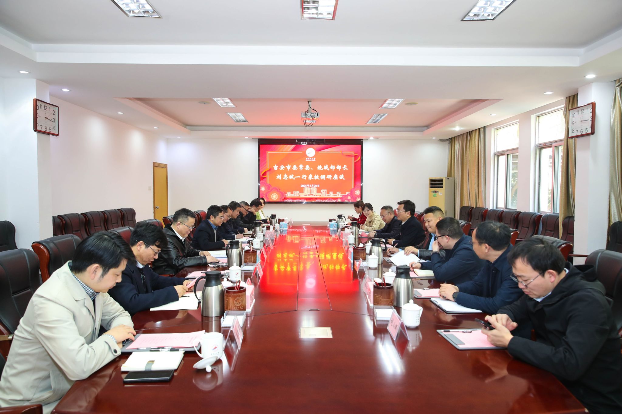 3月20日,吉安市委常委、统战部部长刘志斌一行来校调研。校党委副书记肖宜安主持调研座谈会。校党委常委、副校长敖四江,校党委常委、统战部部长刘梁军,市民宗中心副主任、市民宗局副局长方志平,青原区委常委、统战部部长段晓新,相关部门和学院的负责人参加了座谈会。刘志斌对学校党委给予市委统战部工作的支持表示感谢,对学校统战工作新近取得的成效表示肯定。他对做好统战领域校地合作新篇章提出三个“联动发力”。一是加强理论研究创新,...