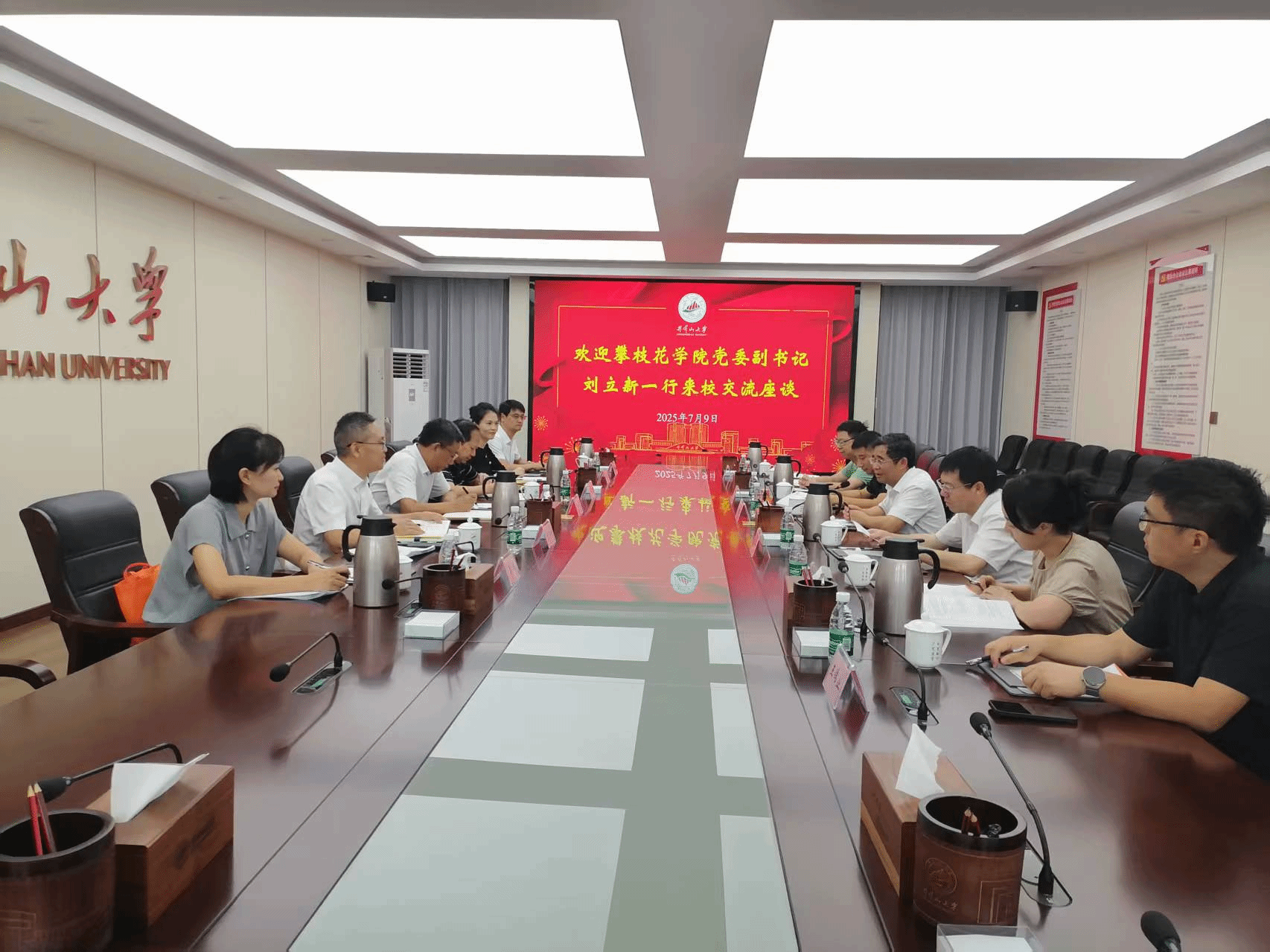 7月9日上午,攀枝花学院党委常委、副书记刘立新率队莅临我校,就临床医学、护理硕士学位点申报工作进行专题考察交流。校党委副书记肖宜安出席并主持座谈会。两校相关职能部门负责人参加座谈。肖宜安对攀枝花学院一行的到来表示热烈欢迎,并详细介绍了我校近年来的办学发展成就,重点分享了在临床医学、护理学等专业硕士学位点申报方面的经验。刘立新副书记对我校取得的办学成果给予高度评价,对经验分享表示衷心感谢。他全面介绍了攀枝花学院的办学情况,...